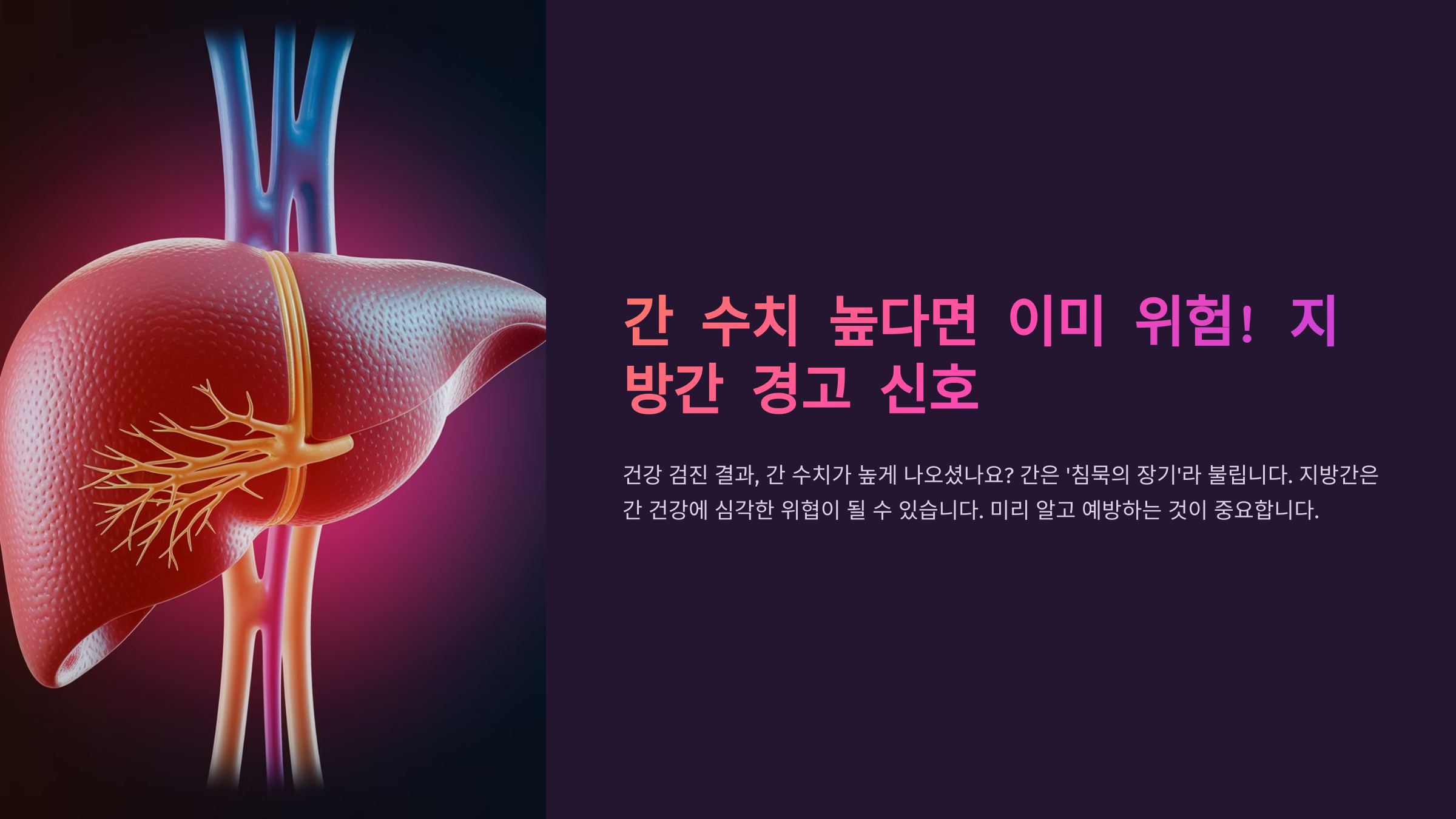 간은 우리 몸에서 해독 작용을 담당하는 중요한 기관이에요. 그런데 간 수치가 높아졌다는 건 간이 위험 신호를 보내고 있다는 뜻이에요! 🤯