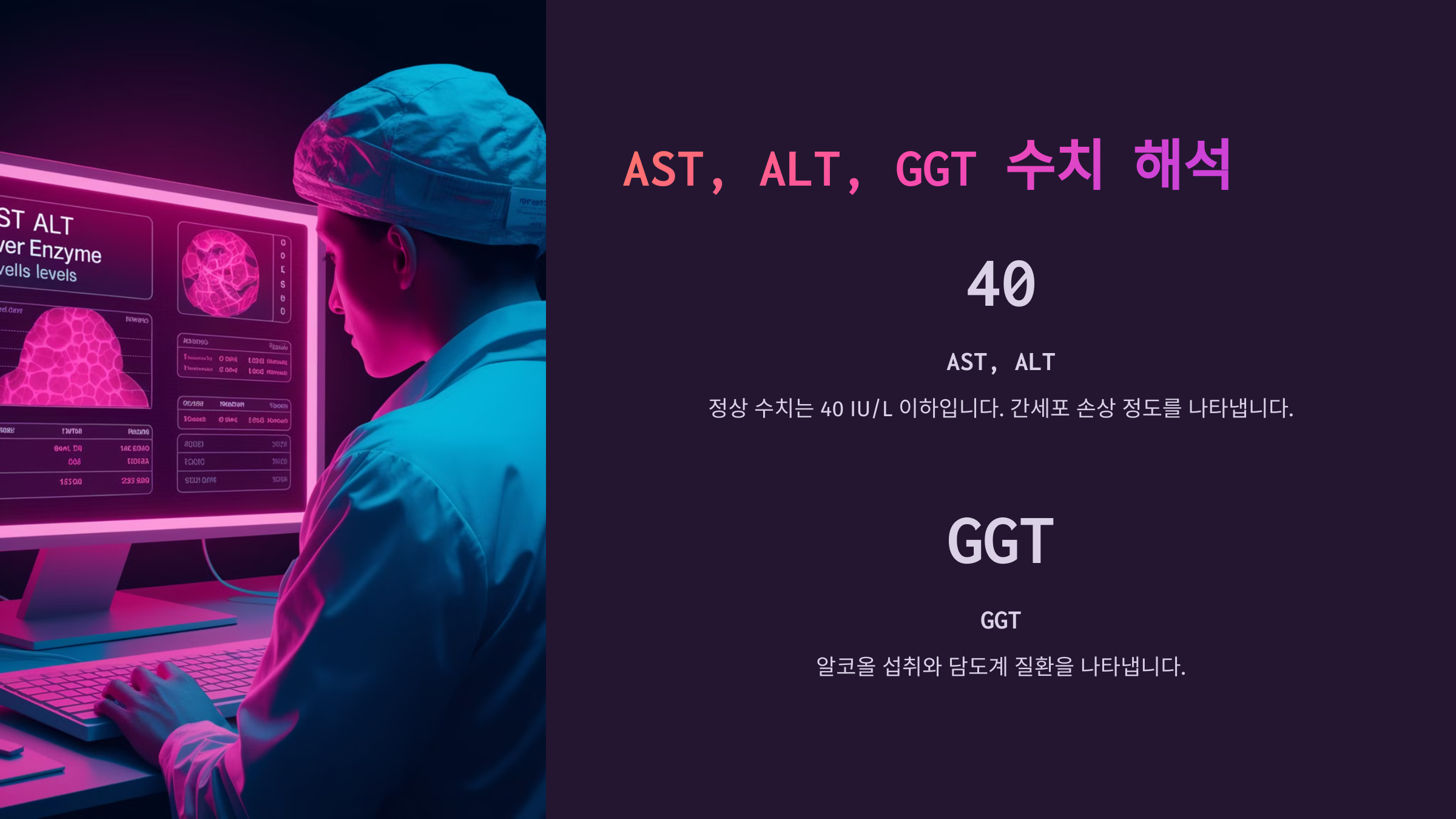 간 건강을 평가하는 중요한 지표 중 하나가 바로 AST, ALT, GGT 수치예요. 이 세 가지 수치는 간세포 손상 여부와 간 기능의 상태를 알려주는 중요한 역할을 해요. 🩸