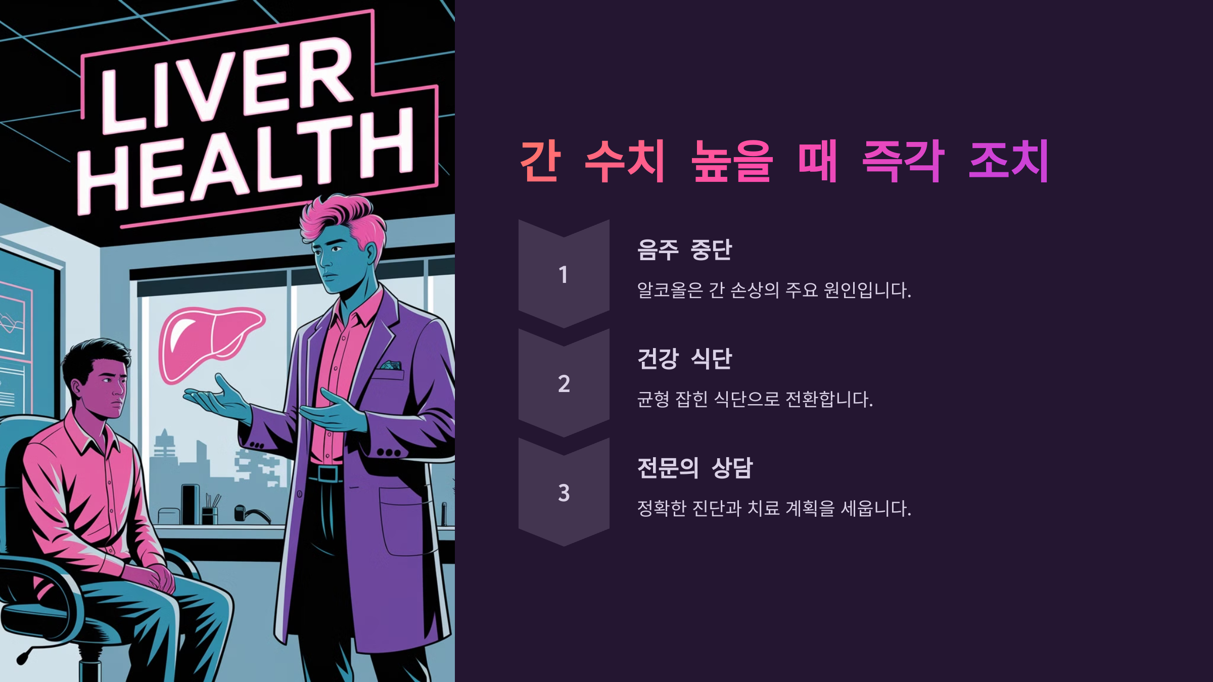 간 수치가 높게 나왔다면 절대 방치해서는 안 돼요! 즉각적으로 생활습관을 개선하고 필요한 조치를 취해야 간을 보호할 수 있어요. 🔥