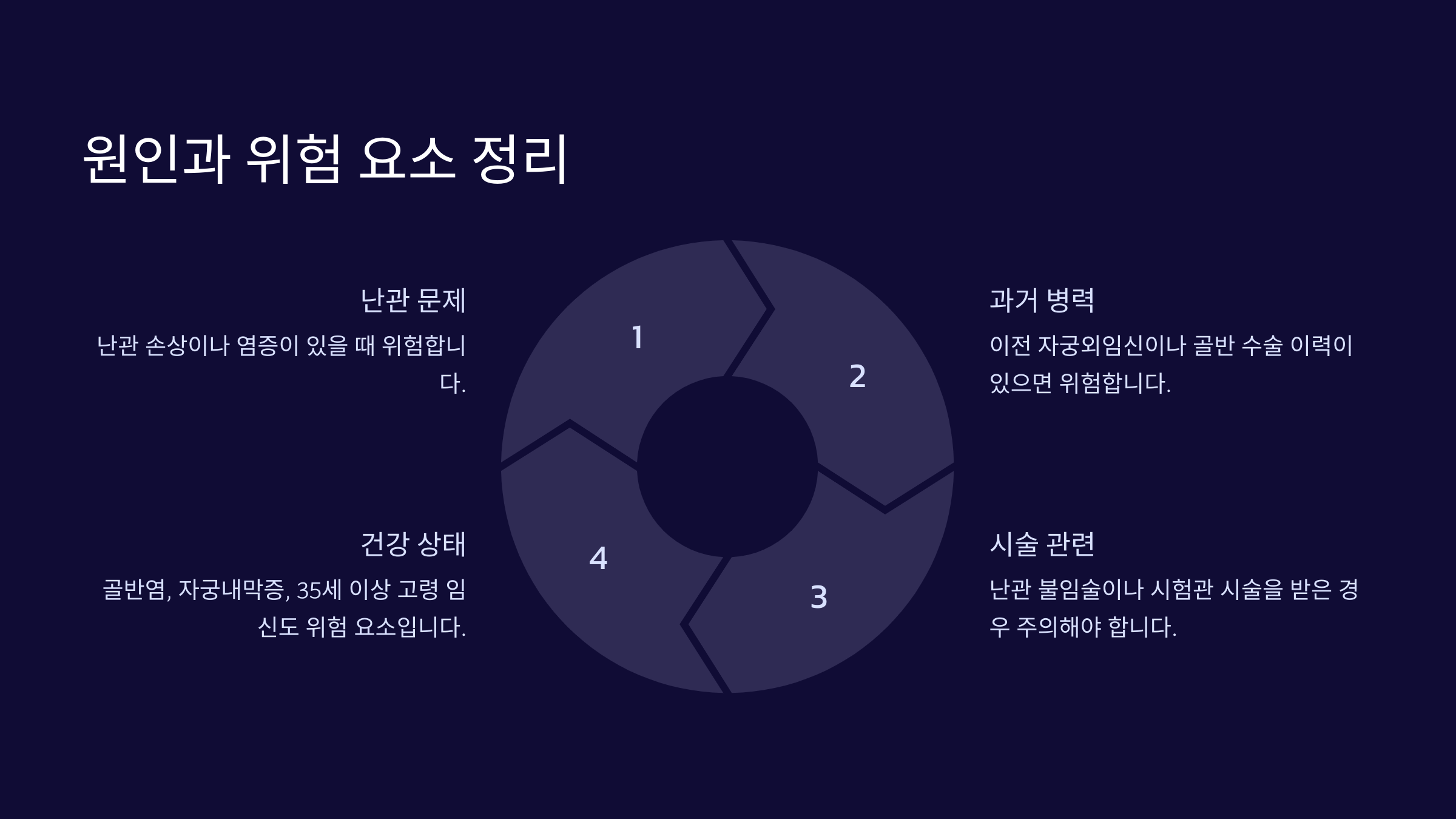| 나팔관 손상 | 염증이나 수술 후유증으로 인해 수정란 이동이 어려워짐 |