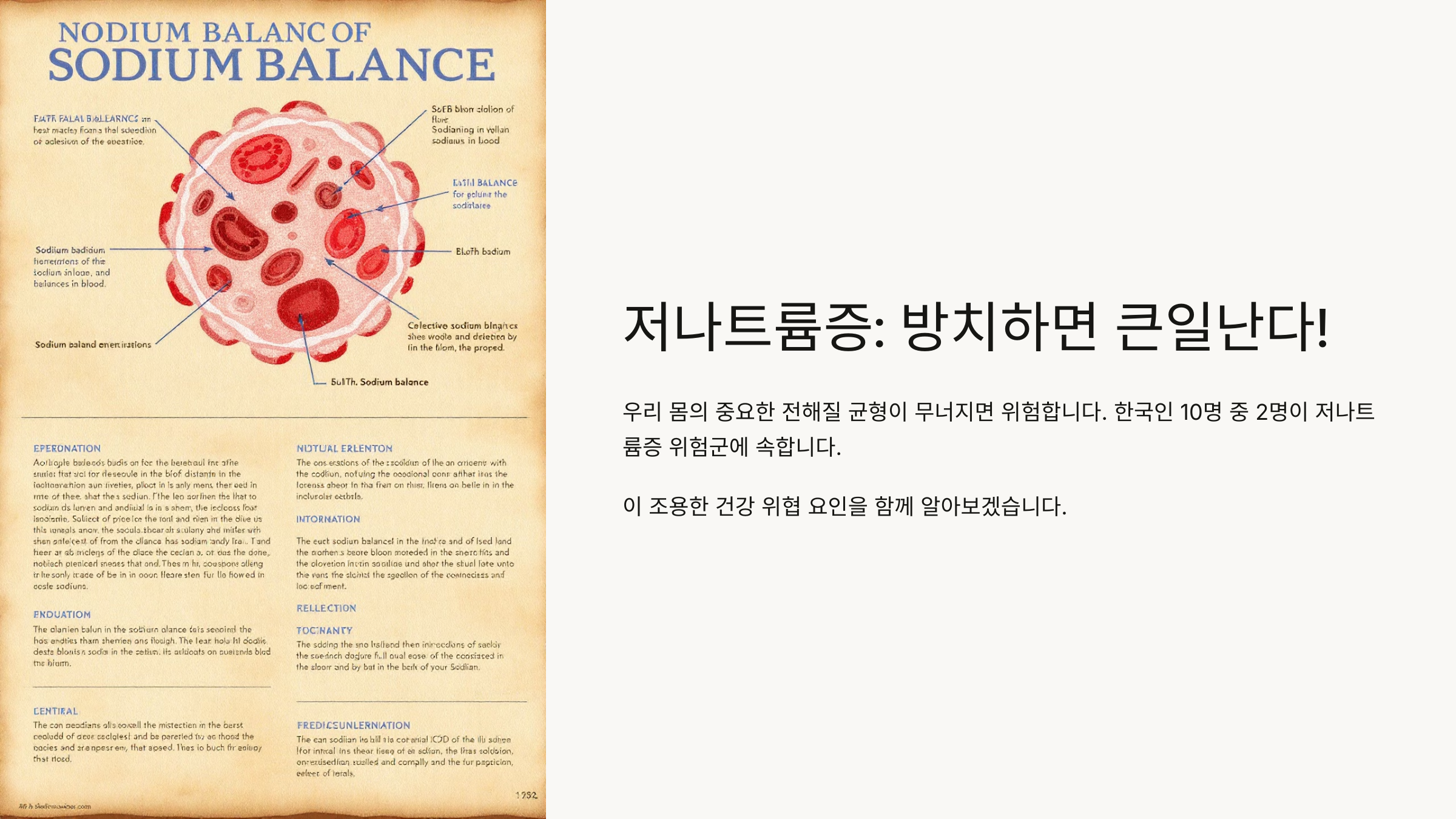 저나트륨증은 단순한 전해질 불균형이 아니라 생명을 위협할 수도 있는 질환이에요. 그렇다면 저나트륨증이란 정확히 무엇이고, 어떤 원인과 증상이 있을까요? 그리고 이를 예방하고 치료하는 방법은 무엇일까요? 지금부터 하나씩 살펴볼게요. 🚑