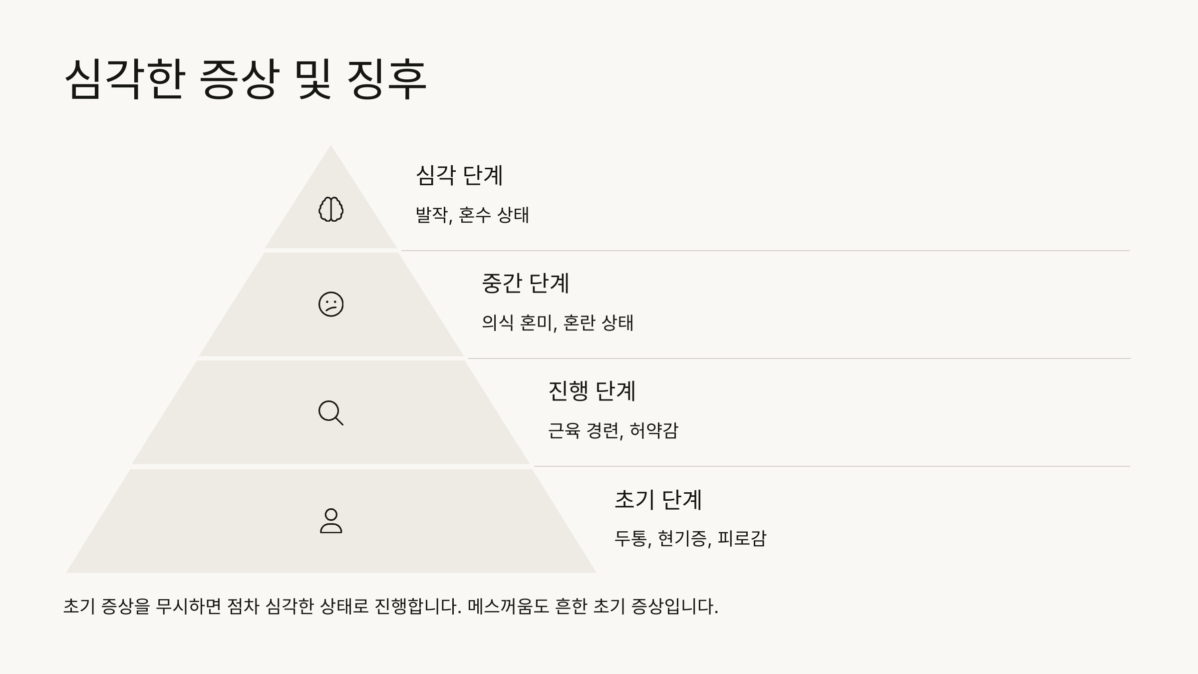 ✔ 1) 초기 증상 – 피로, 두통, 근육 경련, 메스꺼움