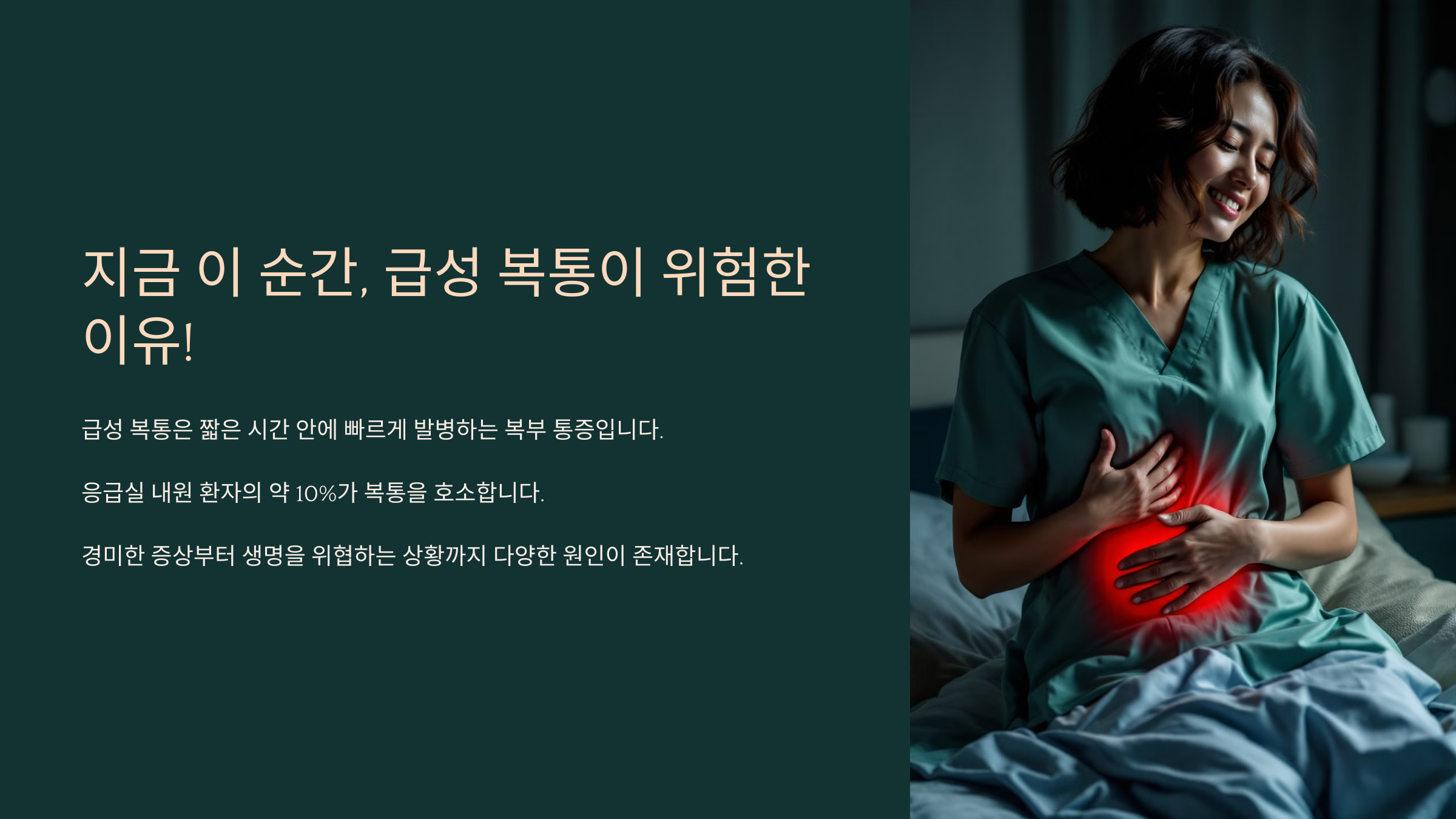 급성 복통 중에는 반드시 치료가 필요한 질환이 있어요. 이런 질환을 방치하면 심각한 합병증이 발생할 수 있으니 조기에 진단받는 것이 중요해요.