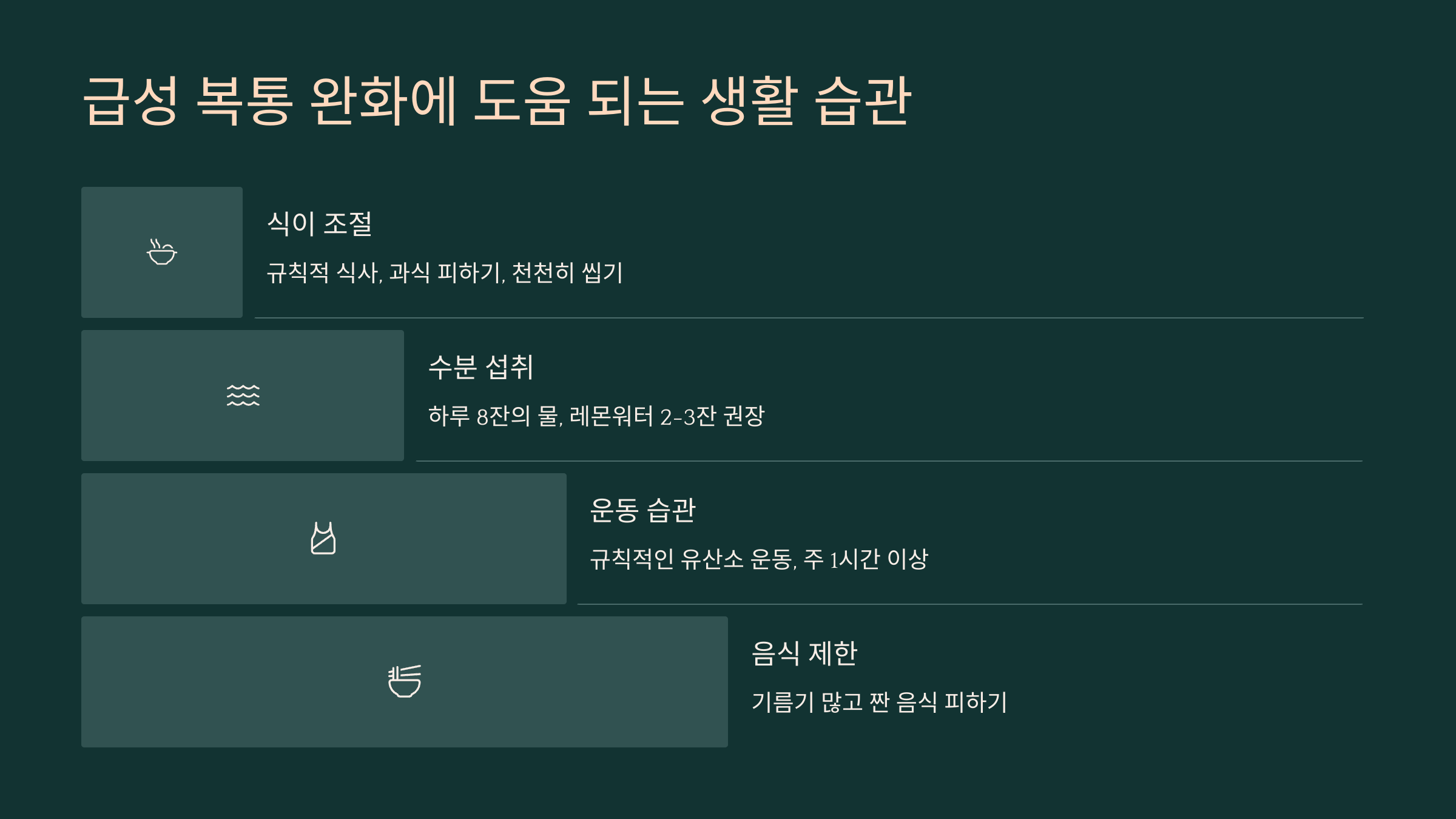 이제 급성 복통 완화에 도움이 되는 생활 습관을 살펴볼게요! 🚀