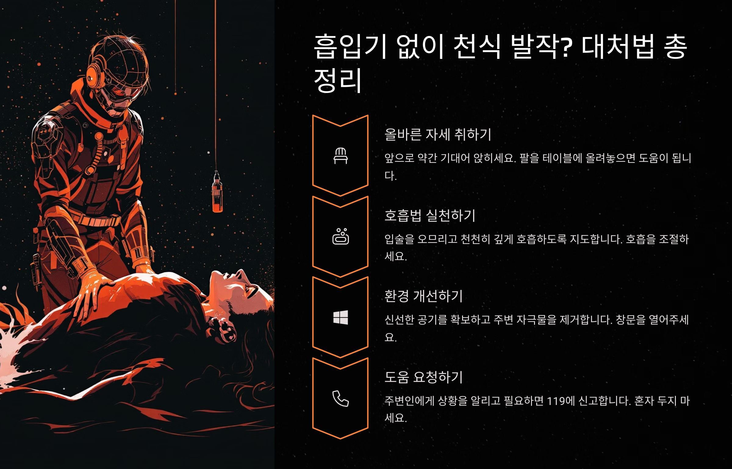 🏠 흡입기 없이 천식 발작 시 대처법 🚨