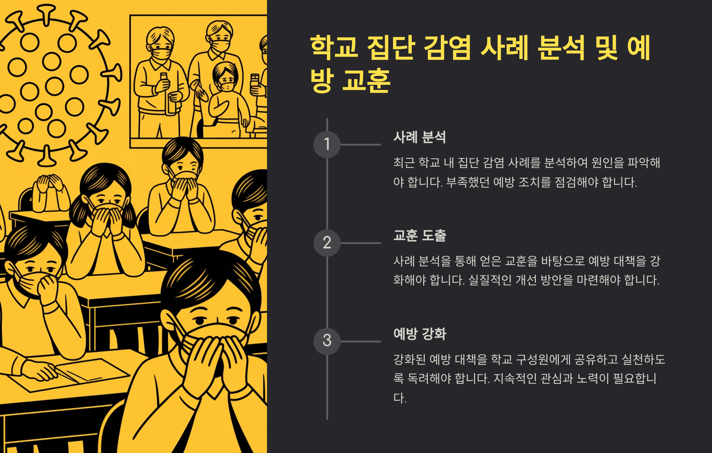 그렇다면, 실제로 학교에서 발생한 집단 감염 사례를 통해 어떤 예방 교훈을 얻을 수 있을까요? 다음 섹션에서 자세히 살펴볼게요.