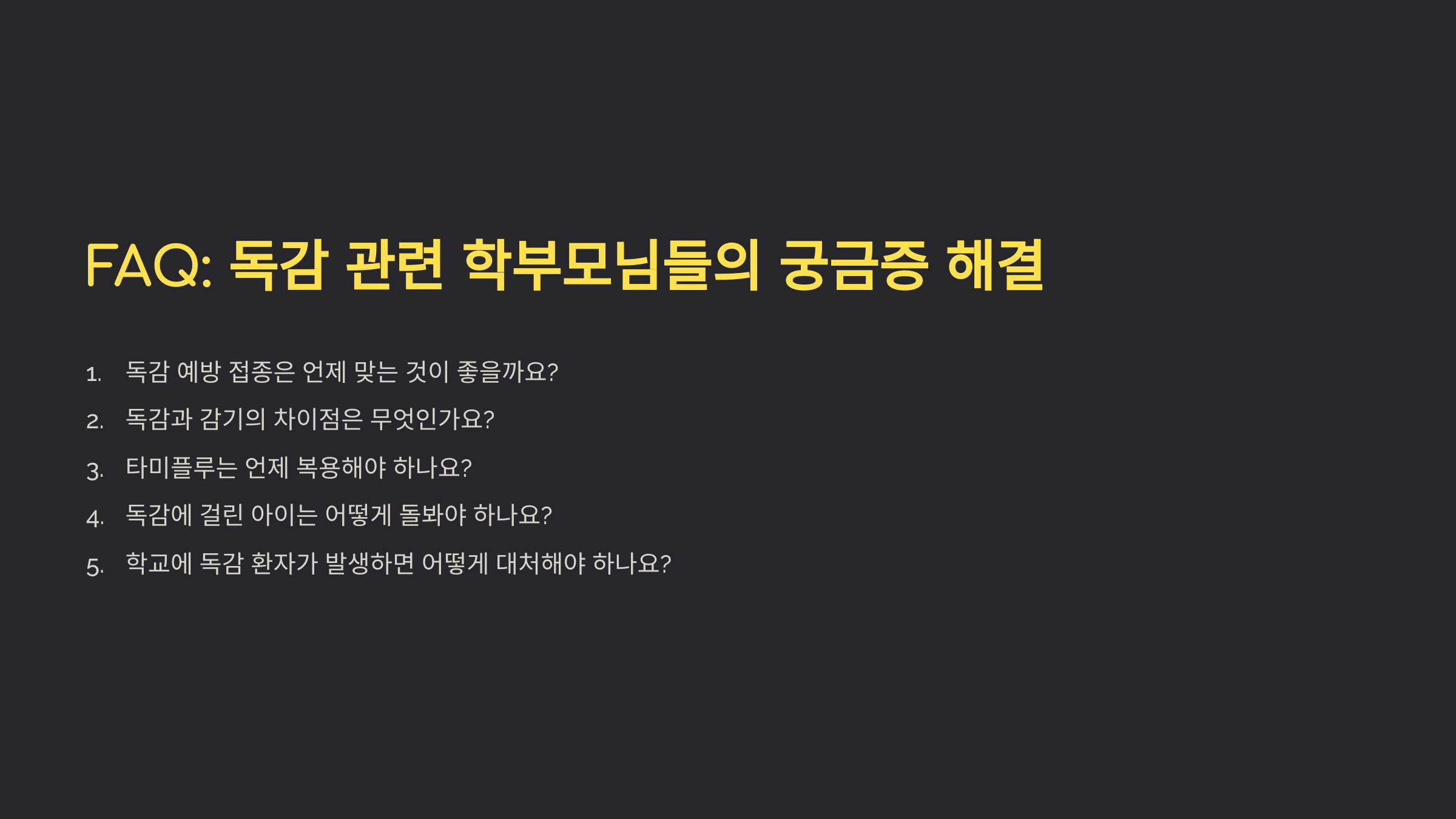 이 사례에서 얻을 수 있는 교훈은 간단해요. 독감 증상이 있는 학생은 무리하게 등교하지 않아야 하고, 학교에서는 위생 수칙을 철저히 지켜야 한다는 점이죠.