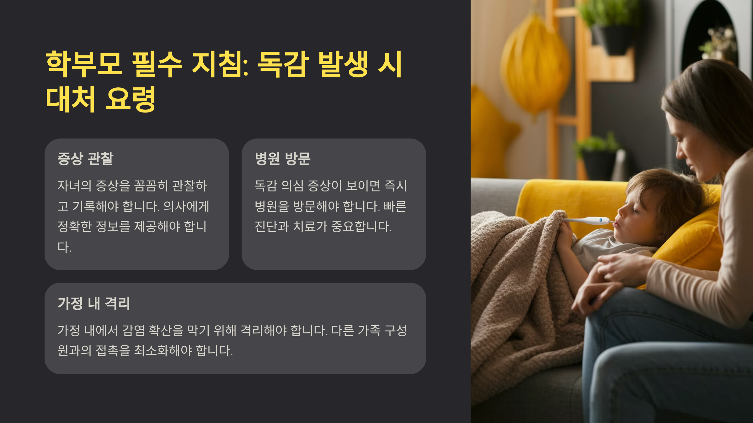 그렇다면, 부모님들은 가정에서 아이들의 건강을 어떻게 챙겨야 할까요? 독감 예방과 대처를 위한 학부모의 역할을 알아볼게요.