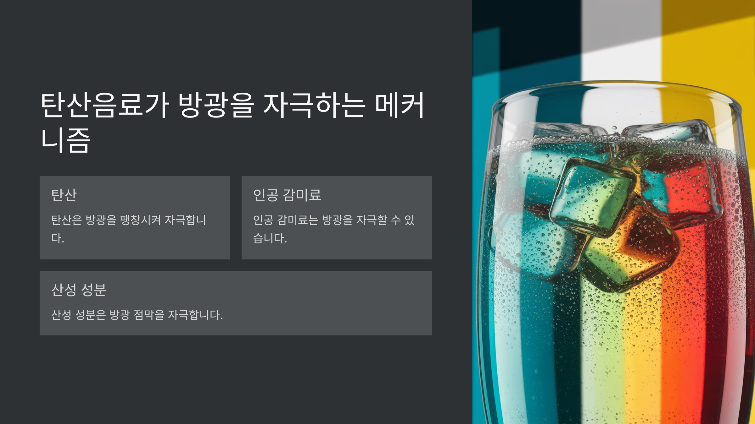 탄산음료는 단순히 달고 시원한 음료가 아니라 방광 건강에 악영향을 줄 수 있는 요소가 가득해요. 가장 큰 문제는 탄산과 카페인이 방광을 자극한다는 점이에요.