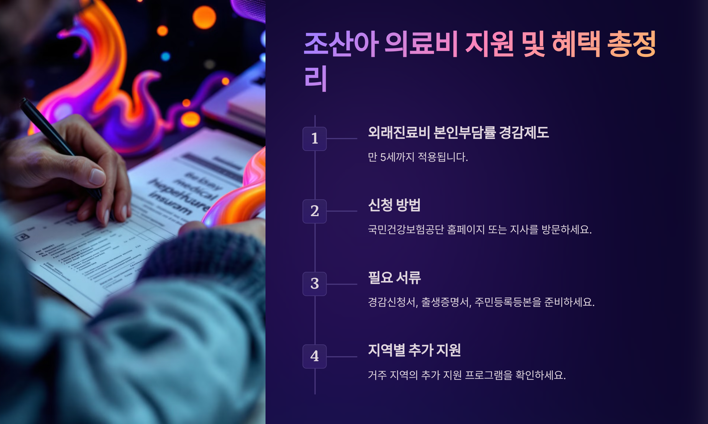 ✔ 건강보험 혜택 외에도 지방자치단체에서 추가 지원금을 제공하는 경우가 많으니 거주 지역의 보건소나 주민센터에 문의해 보세요.