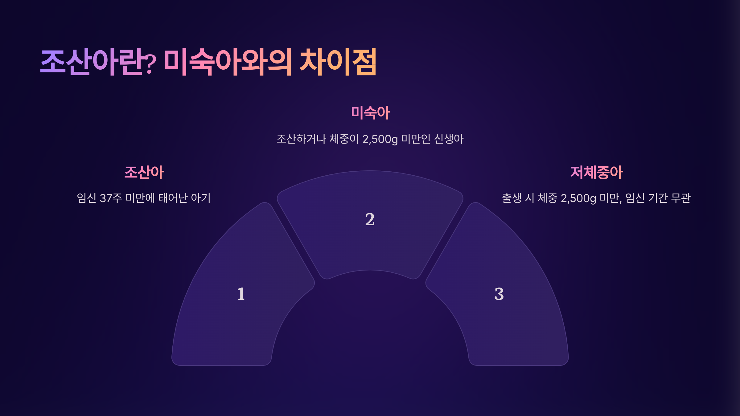 | 정의 | 임신 37주 미만 출생 | 체중 2.5kg 미만 또는 장기 미성숙 |