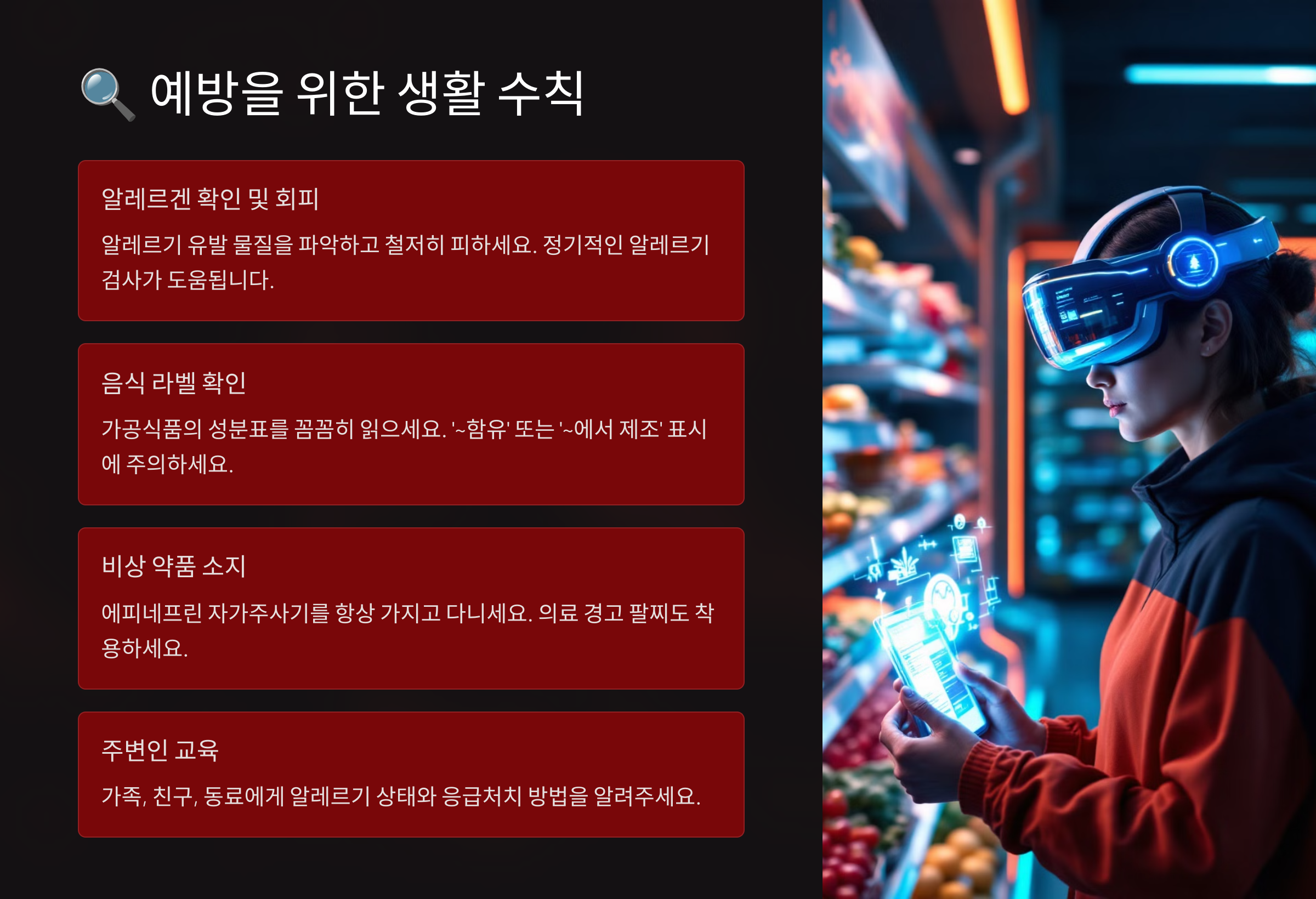 | 식단 관리 | 알레르기 유발 음식 피하고 안전한 대체식 찾기 |