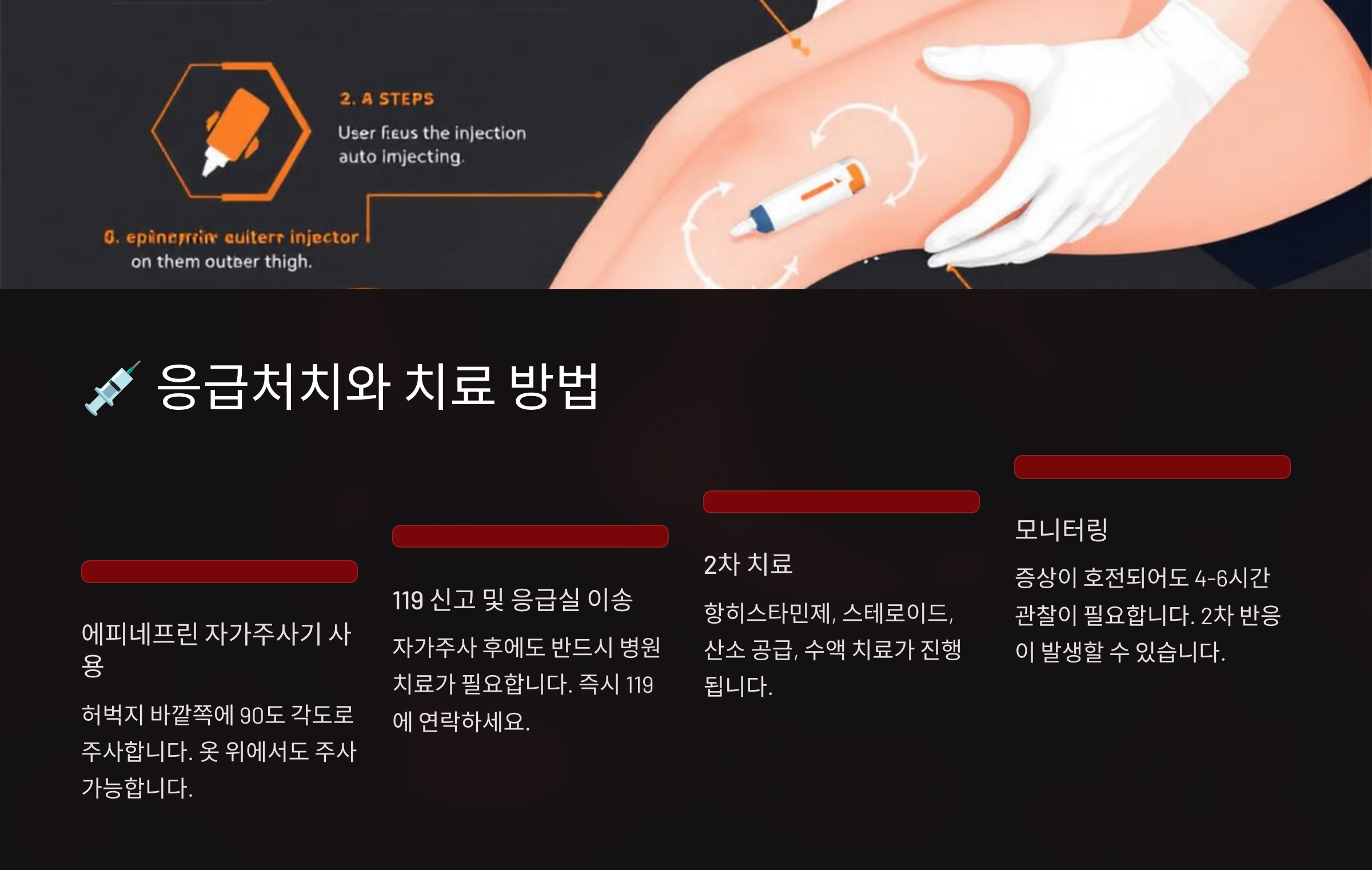 | 2단계 | 에피네프린 주사 투여 (허벅지 근육) |