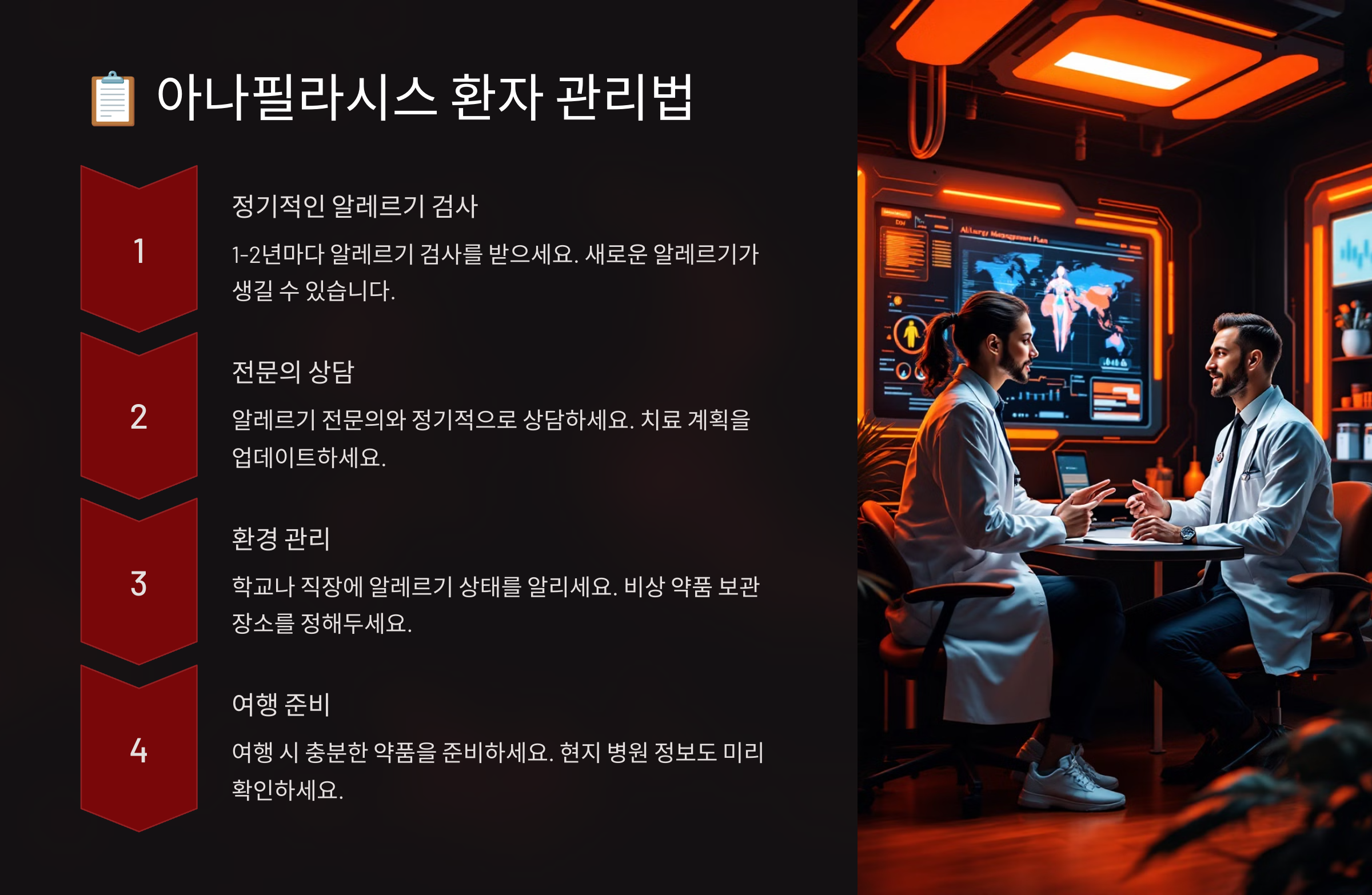 이번 글에서 원인, 증상, 응급처치 방법, 예방 수칙, 환자 관리법 등을 모두 정리해 봤어요. 본인뿐만 아니라 주변 사람들도 아나필라시스에 대해 알고 대비할 수 있도록 정보를 공유해 주세요!
