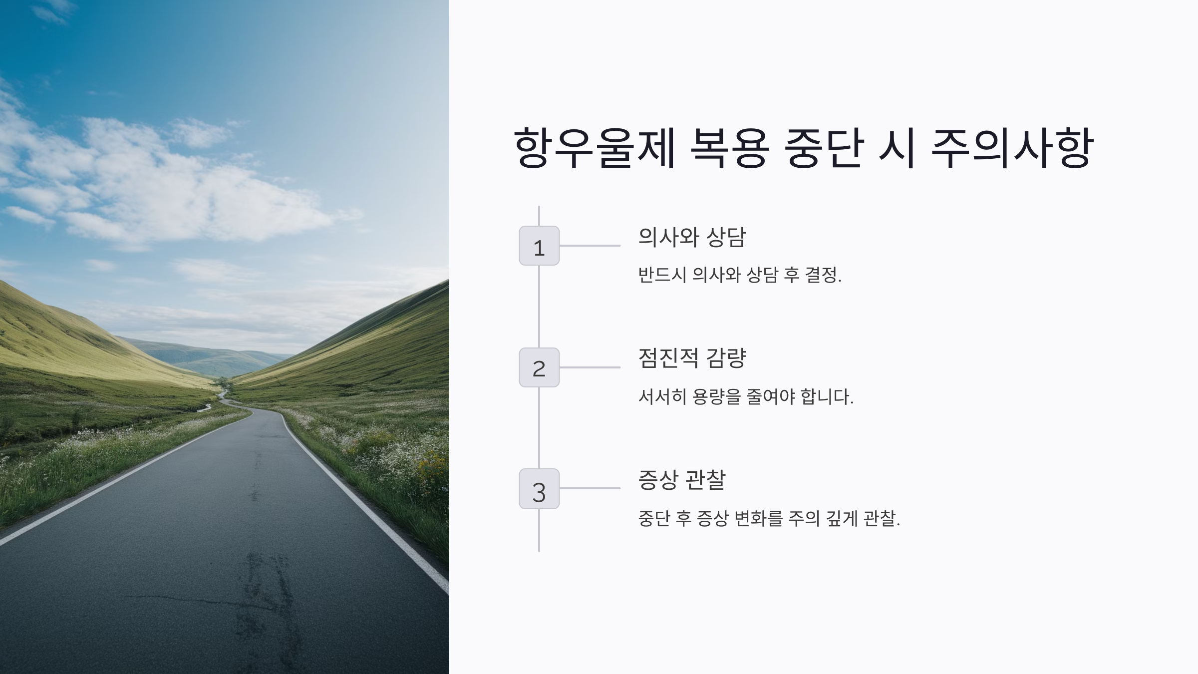 하지만 치료 도중 약을 갑자기 끊으면 문제가 생길 수 있어요. 다음에서 그 위험성을 자세히 알아볼게요! ⚠️