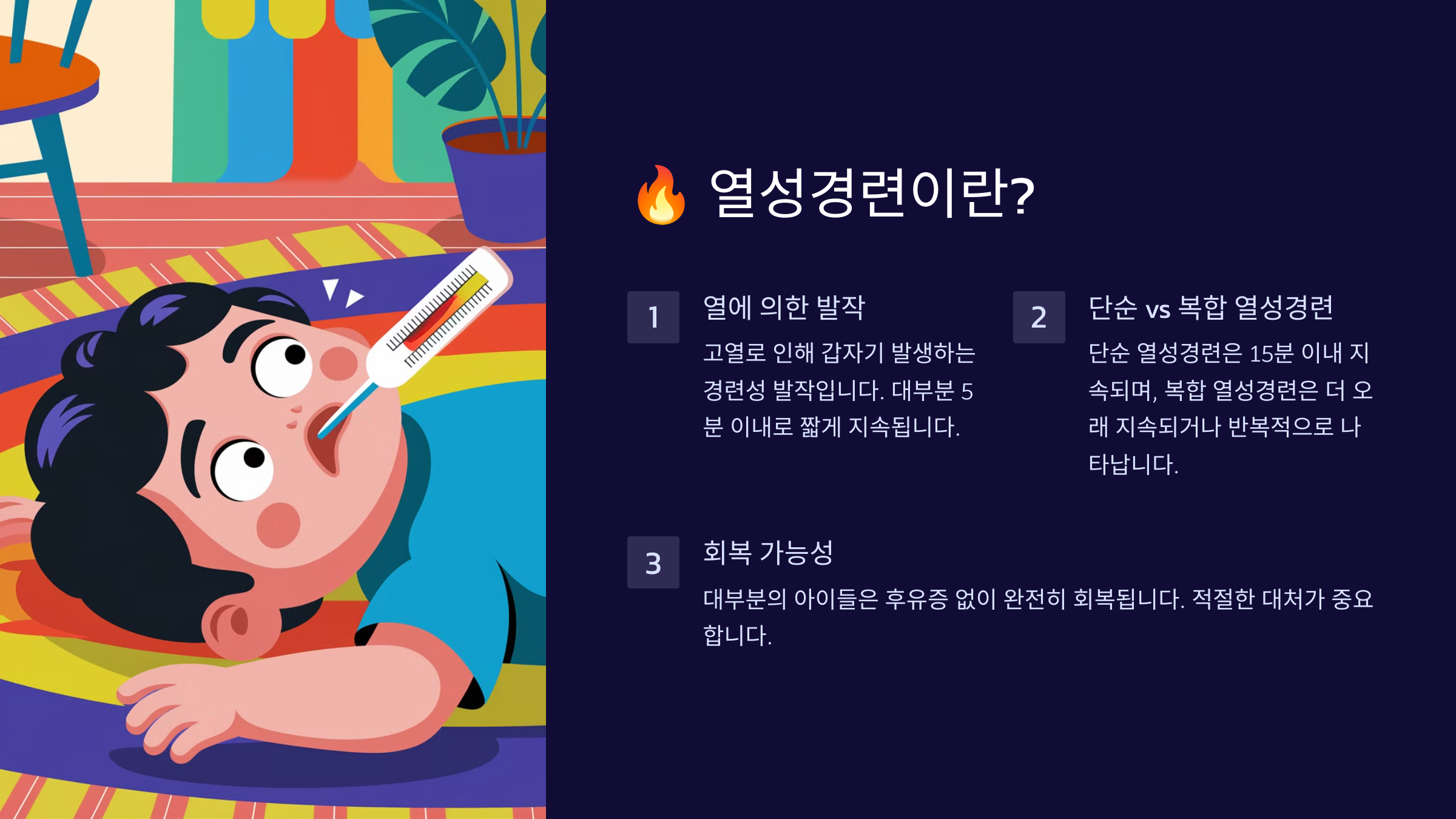 아이가 갑자기 열성경련을 일으키면 부모님 입장에서 무척 당황스러울 수 있어요. 하지만 침착하게 대처하면 큰 문제 없이 지나갈 가능성이 높아요. 🆘