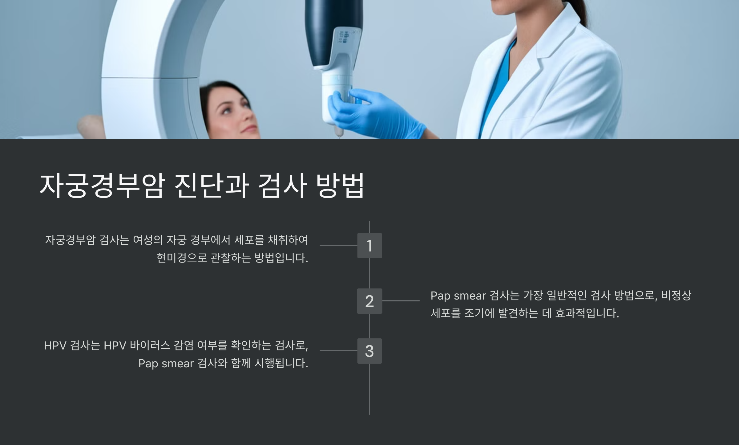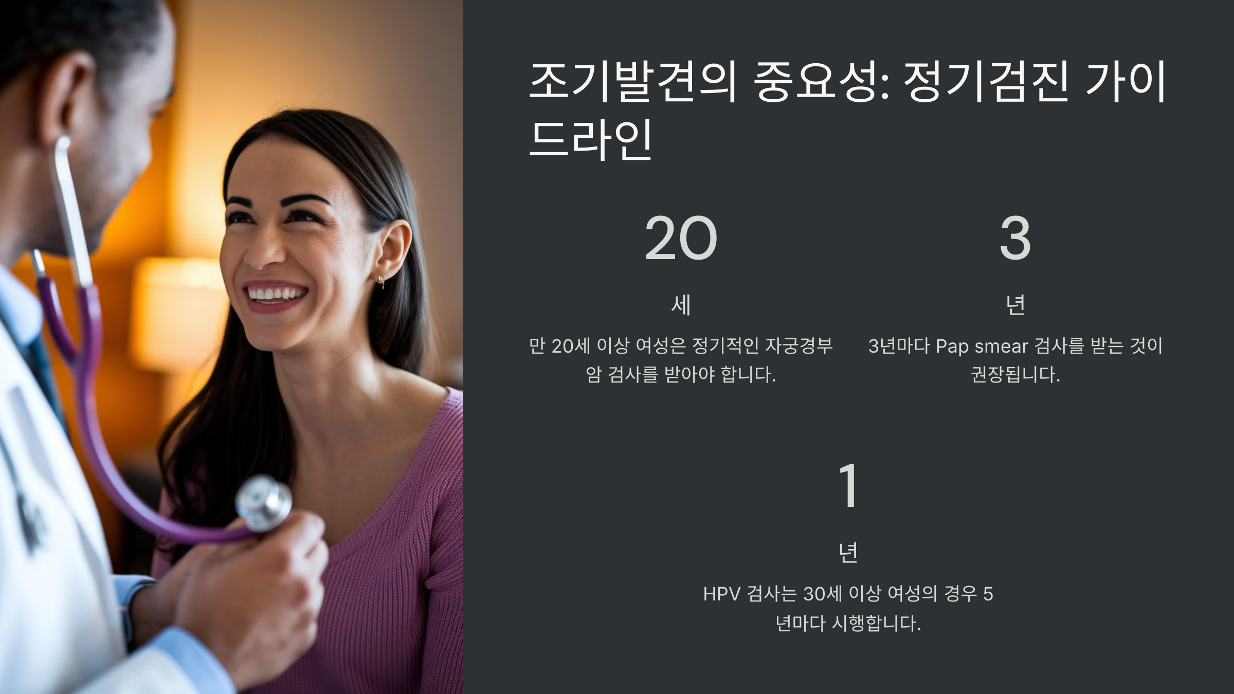 위 요소 중 여러 개에 해당한다면, 더욱 적극적으로 정기검진을 받아야 해요. 특히 HPV 검사와 자궁경부 세포진 검사를 정기적으로 받는 것이 중요해요.