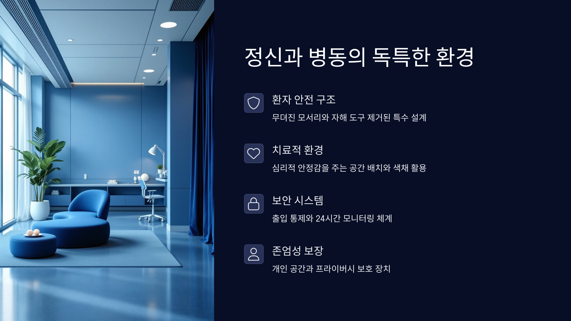 이제 정신과 병동의 환경과 특수성에 대해 알아볼까요? 🏥