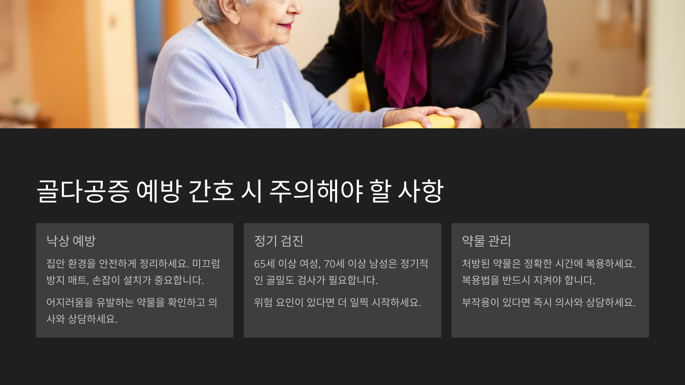 ⚠️ 골다공증 예방 간호 시 주의해야 할 사항