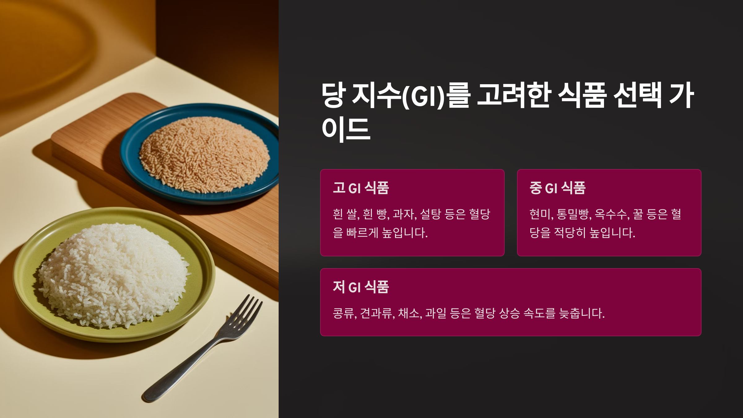 GI를 고려한 식단을 구성하면 혈당을 더욱 효과적으로 관리할 수 있어요! 😊
