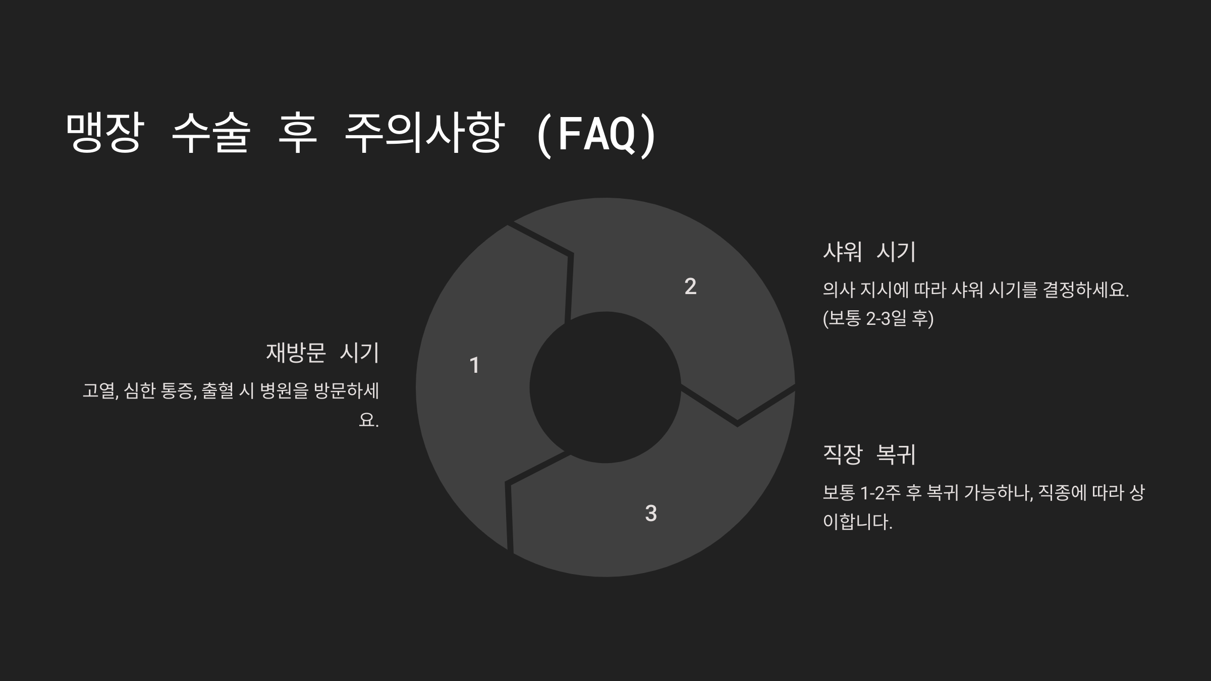 👇 다음 섹션에서는 맹장 수술 후 주의해야 할 사항을 FAQ 형식으로 정리해볼게요! 📌