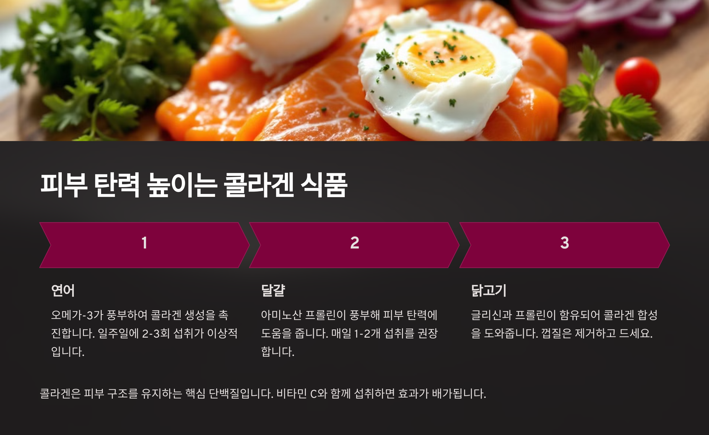 피부 탄력을 유지하려면 콜라겐이 필수예요. 콜라겐은 우리 피부를 지탱하는 단백질로, 나이가 들수록 자연스럽게 감소하게 돼요. 😱 따라서 음식으로 보충하는 게 중요하죠!