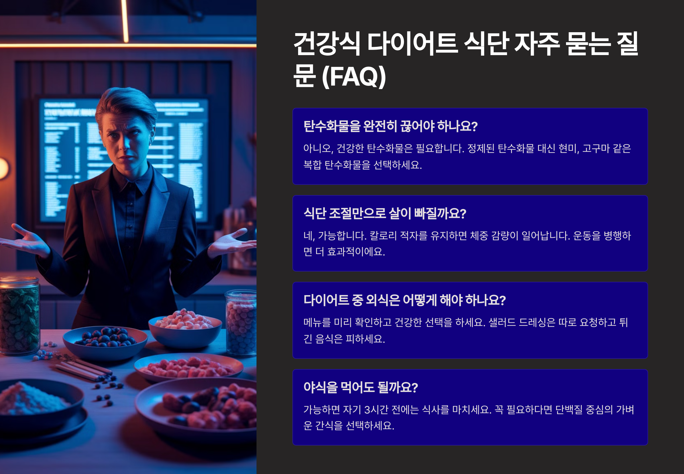 마지막으로 건강식 다이어트 식단 관련 자주 묻는 질문 (FAQ)을 알아볼게요! 🧐
