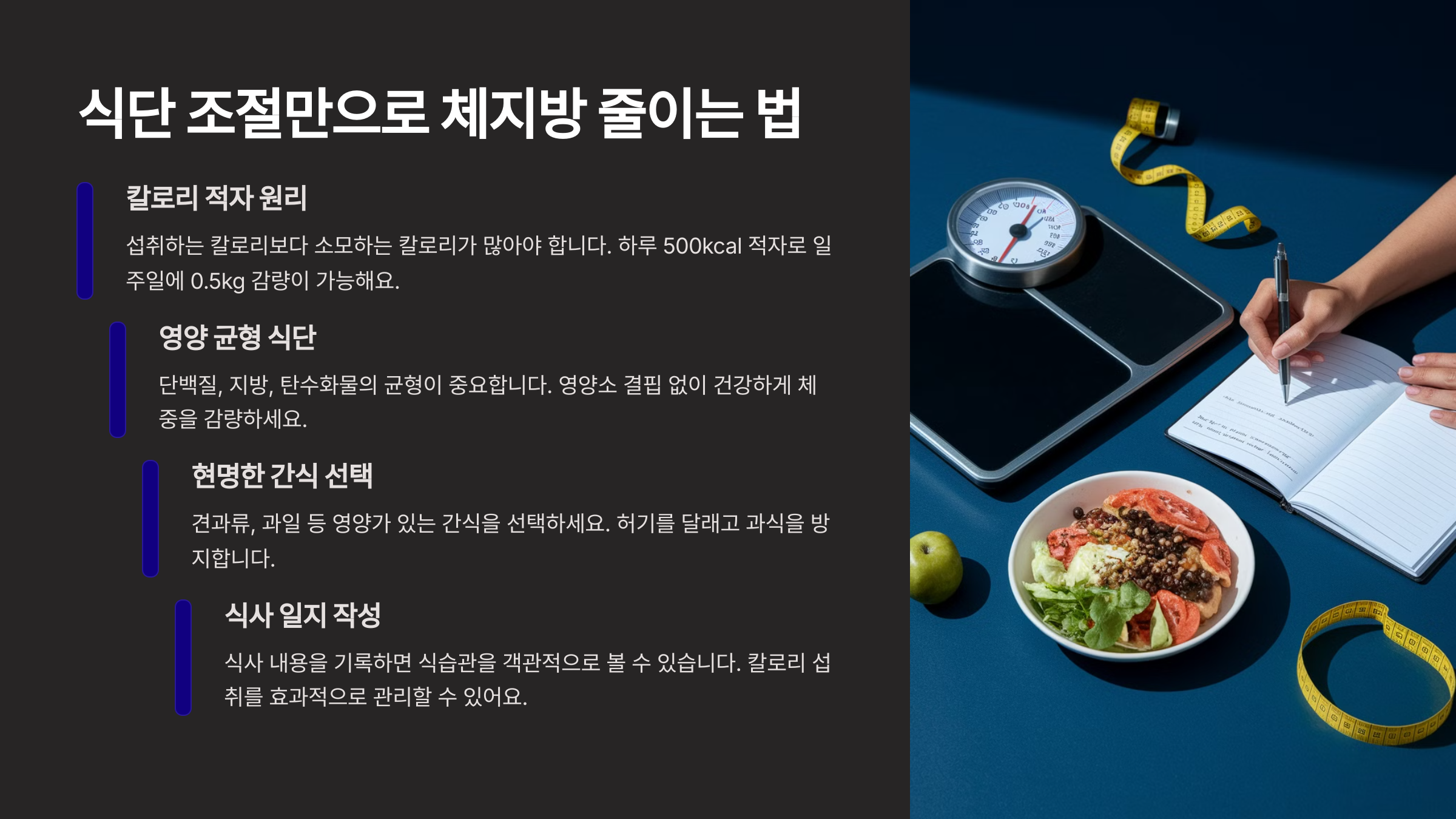 다음은 식단 조절만으로 체지방 줄이는 법에 대해 알아볼게요! 🏃♀️🥗