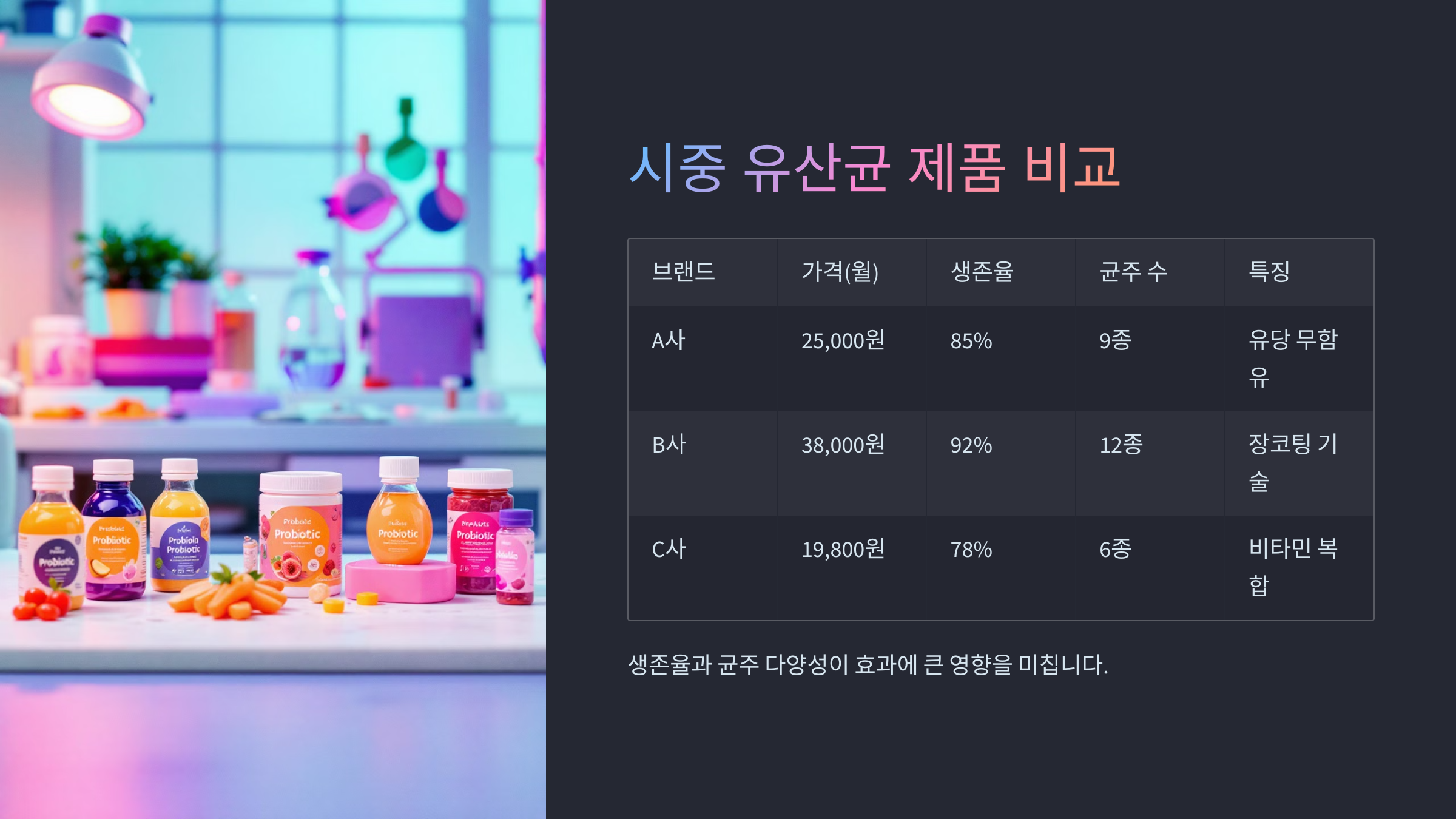 시중 유산균 제품 비교