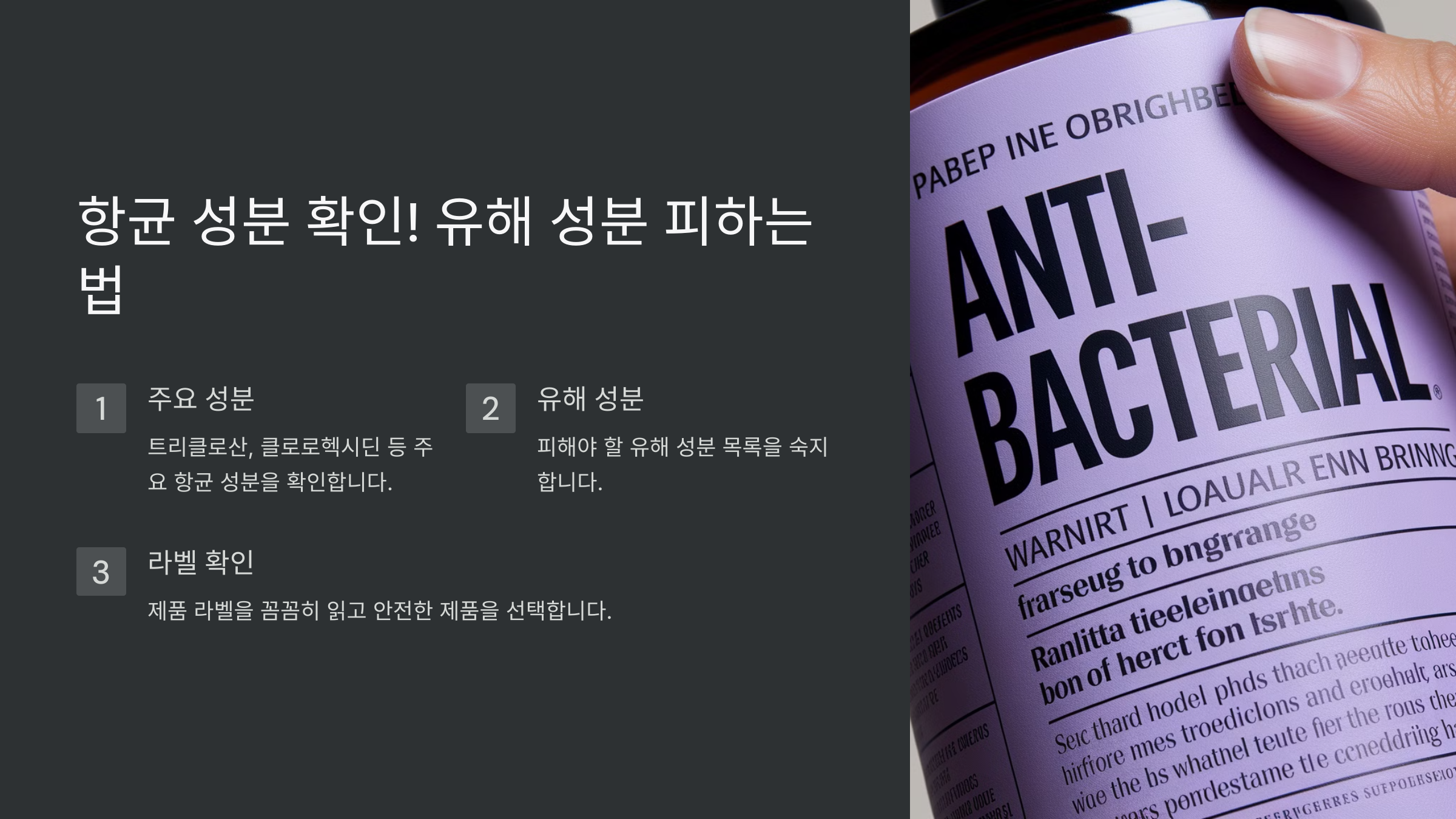 📢 그렇다면 항균 제품을 고를 때, 유해 성분을 피하는 방법은 무엇일까요? 다음 섹션에서 알려드릴게요!
