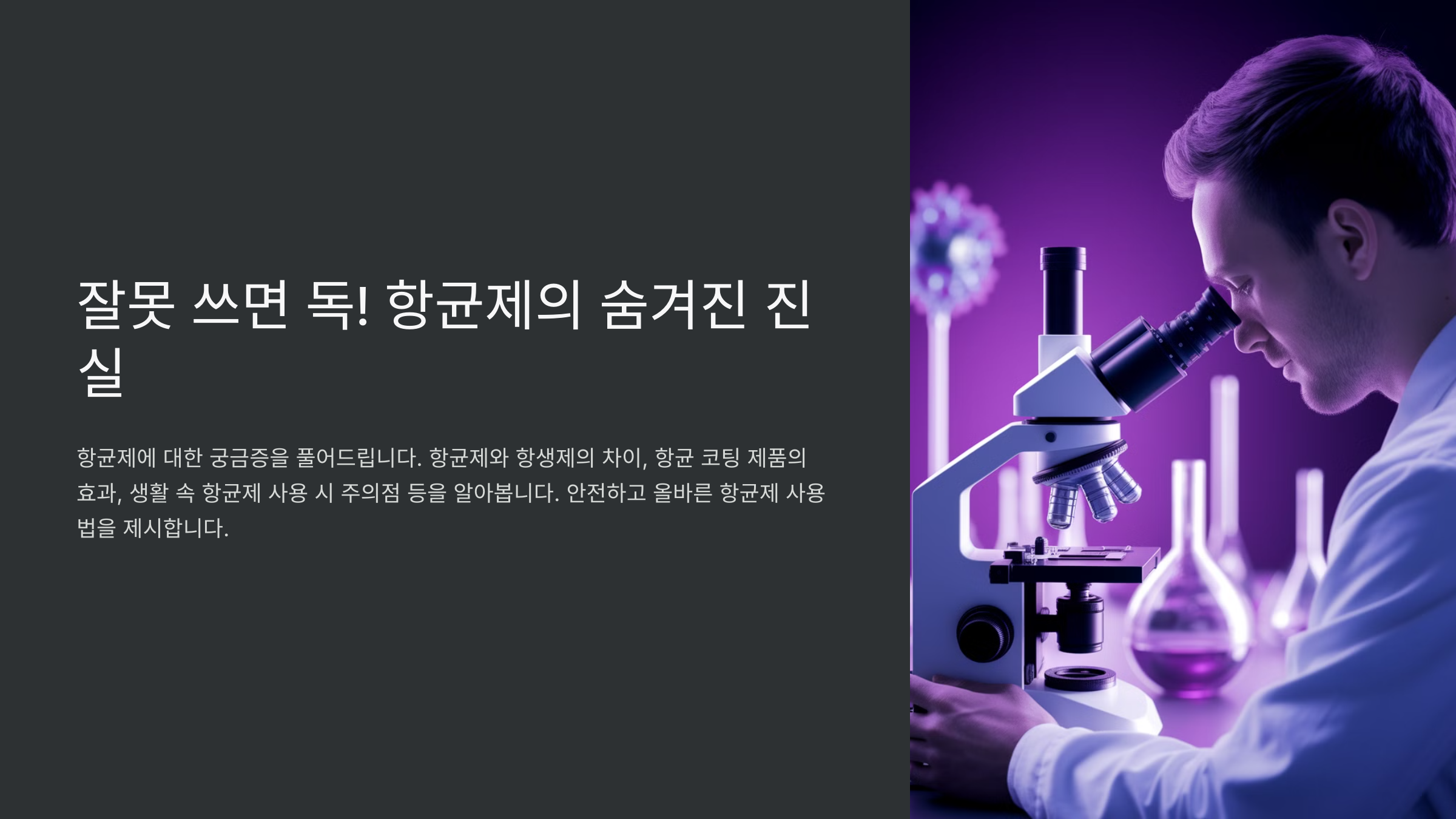 내가 생각했을 때, 항균 제품을 너무 맹신하는 것도 위험할 수 있어요. 오히려 면역력을 약하게 하거나, 환경에 해로운 영향을 미칠 수도 있거든요. 오늘은 항균제의 숨겨진 진실을 함께 알아볼게요!