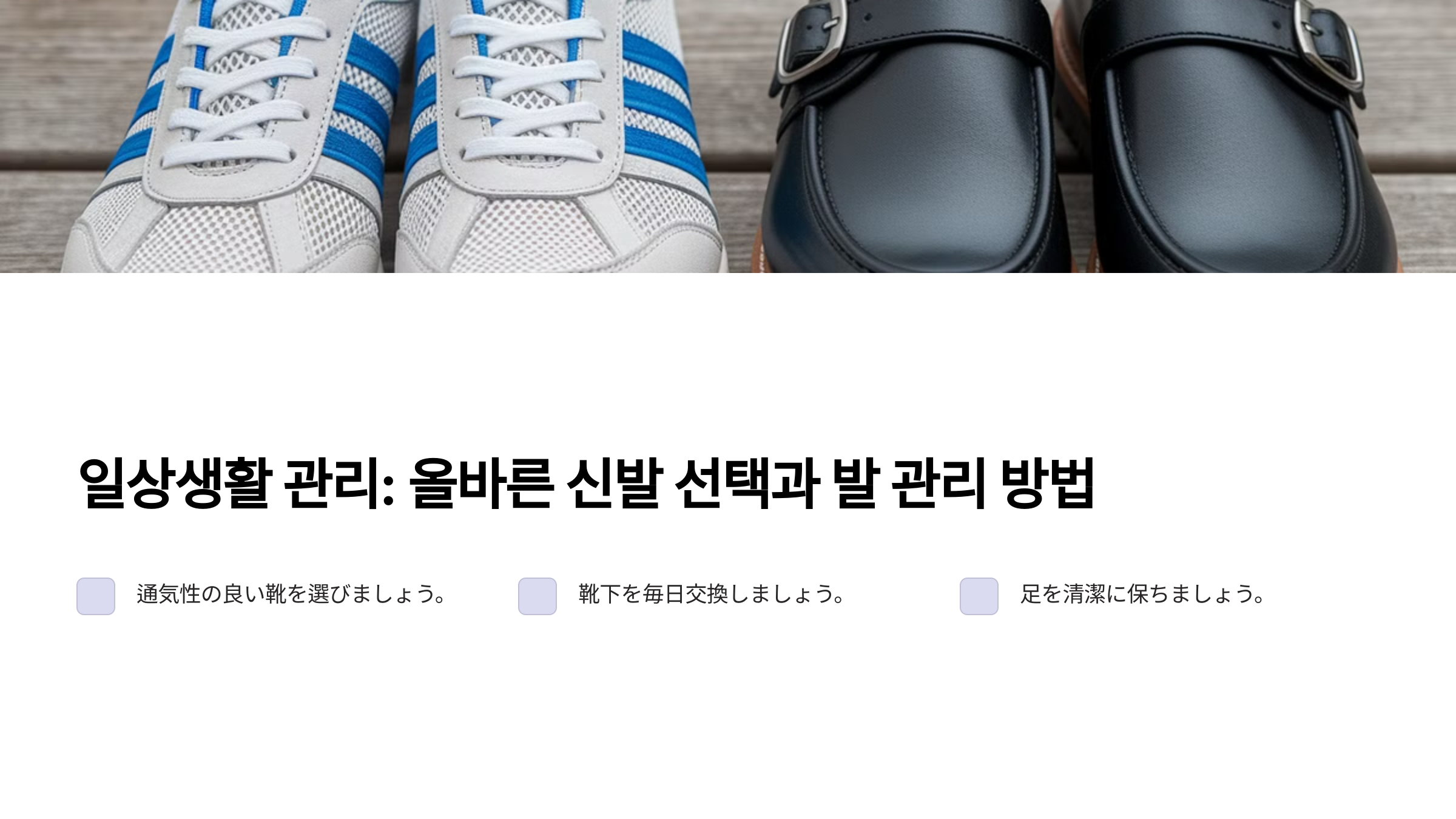 이제 발톱무좀 환자가 신발을 고를 때 주의해야 할 점을 알아볼게요. 👟