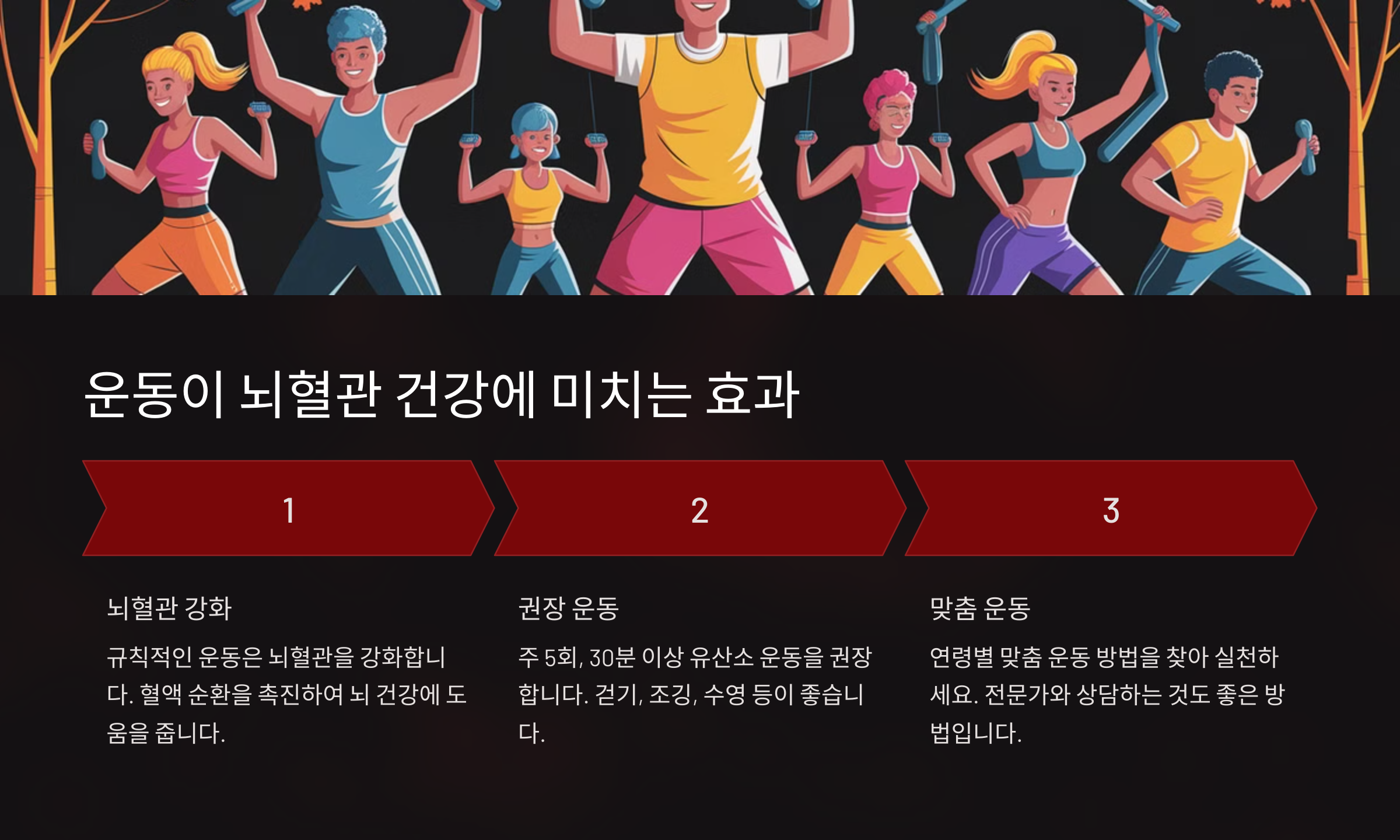 내가 생각했을 때, 운동은 단순히 몸을 건강하게 만드는 게 아니라 뇌혈관을 보호하는 필수 습관이에요. 오늘부터라도 작은 움직임부터 시작해 보는 게 어떨까요? 😊