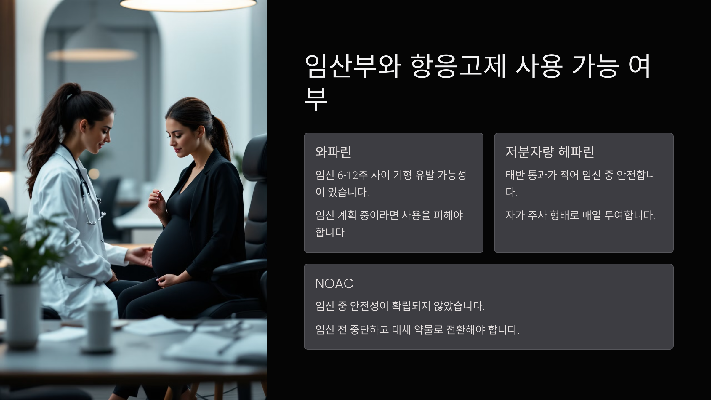 임신 중에는 혈액이 더 끈적해지면서 혈전이 생길 위험이 높아져요. 특히 혈전증 병력이 있는 임산부는 항응고제 복용이 필요할 수 있어요. 하지만 모든 항응고제가 임산부에게 안전한 것은 아니기 때문에 신중한 선택이 필요해요. 👶