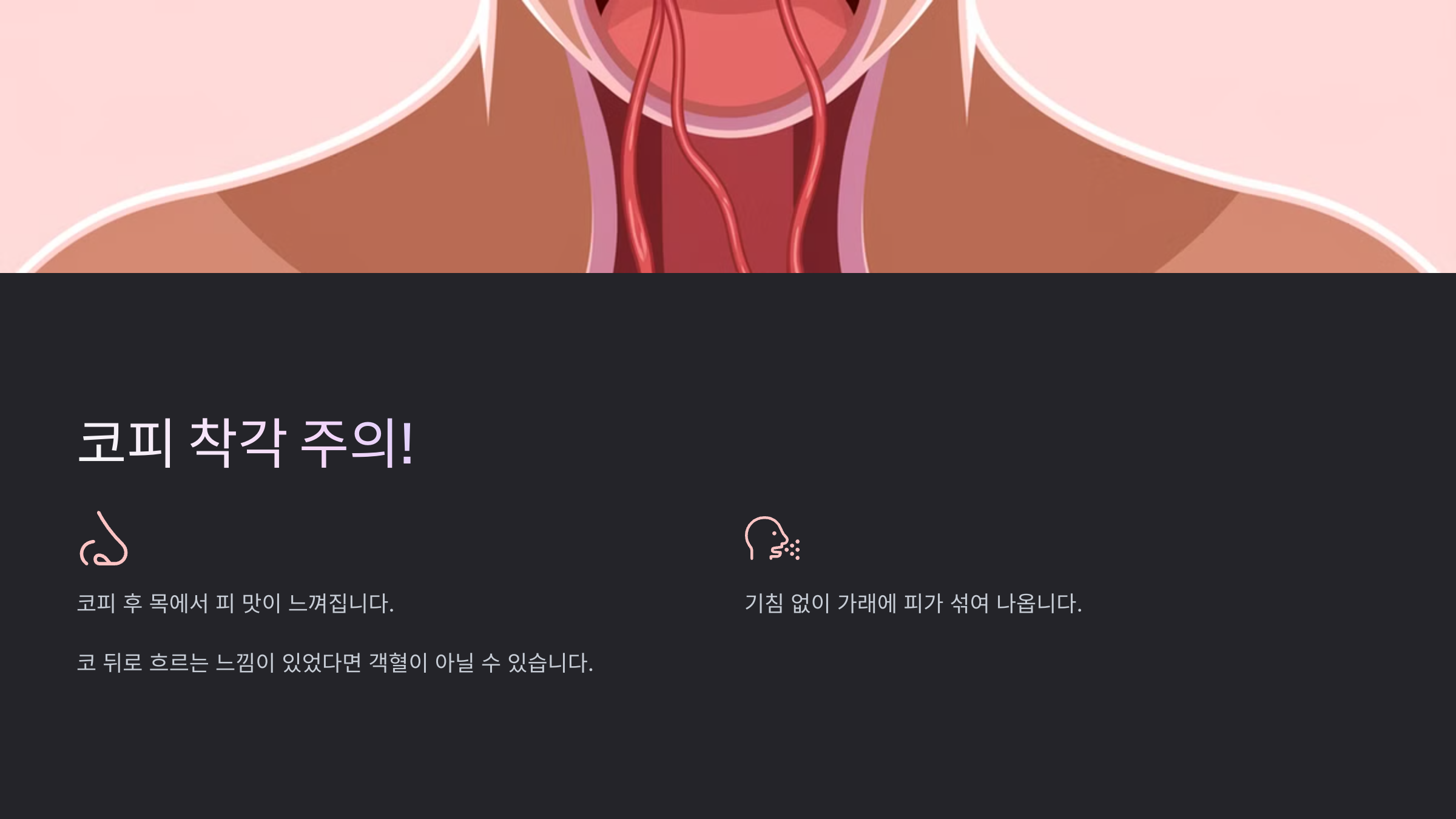 | 건조한 환경 | 목 점막이 약해져 출혈 가능 |