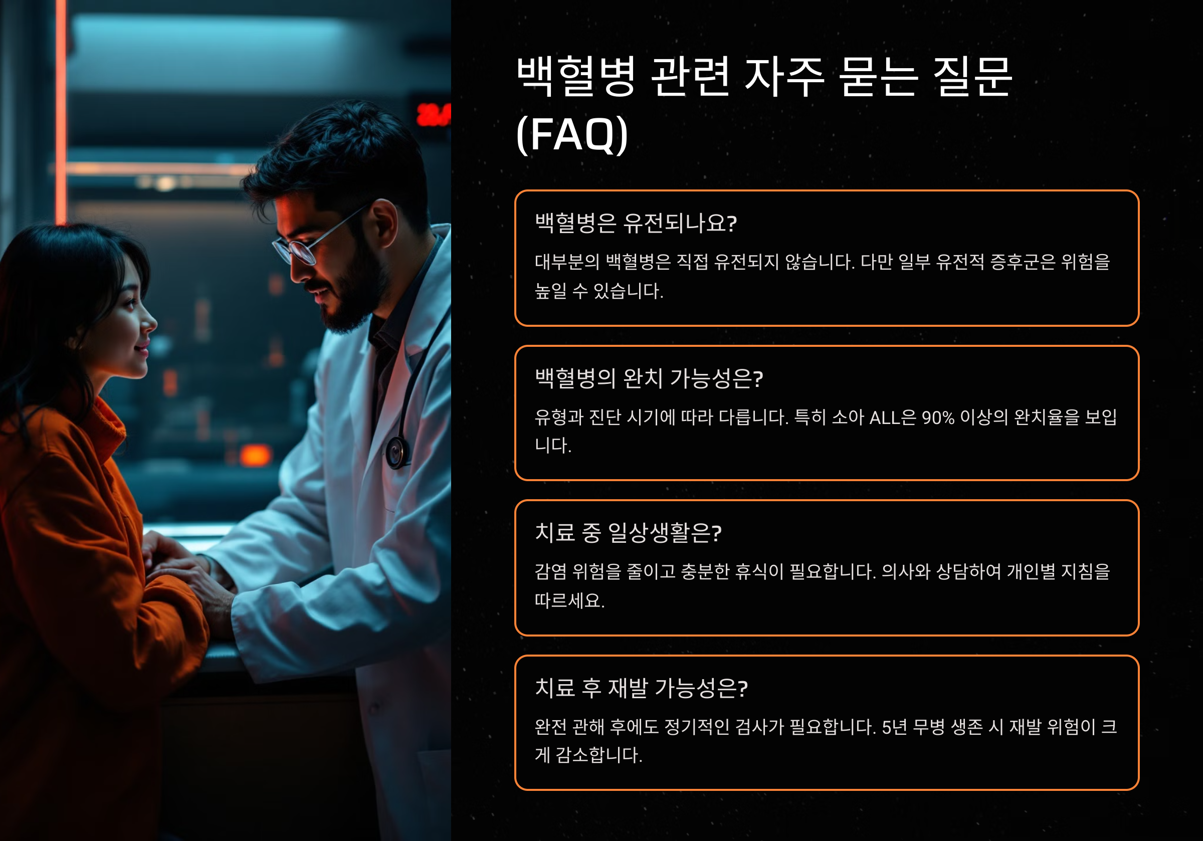 💡 다음 섹션에서는 **"백혈병 관련 자주 묻는 질문 (FAQ)"**을 알아볼게요! ❓