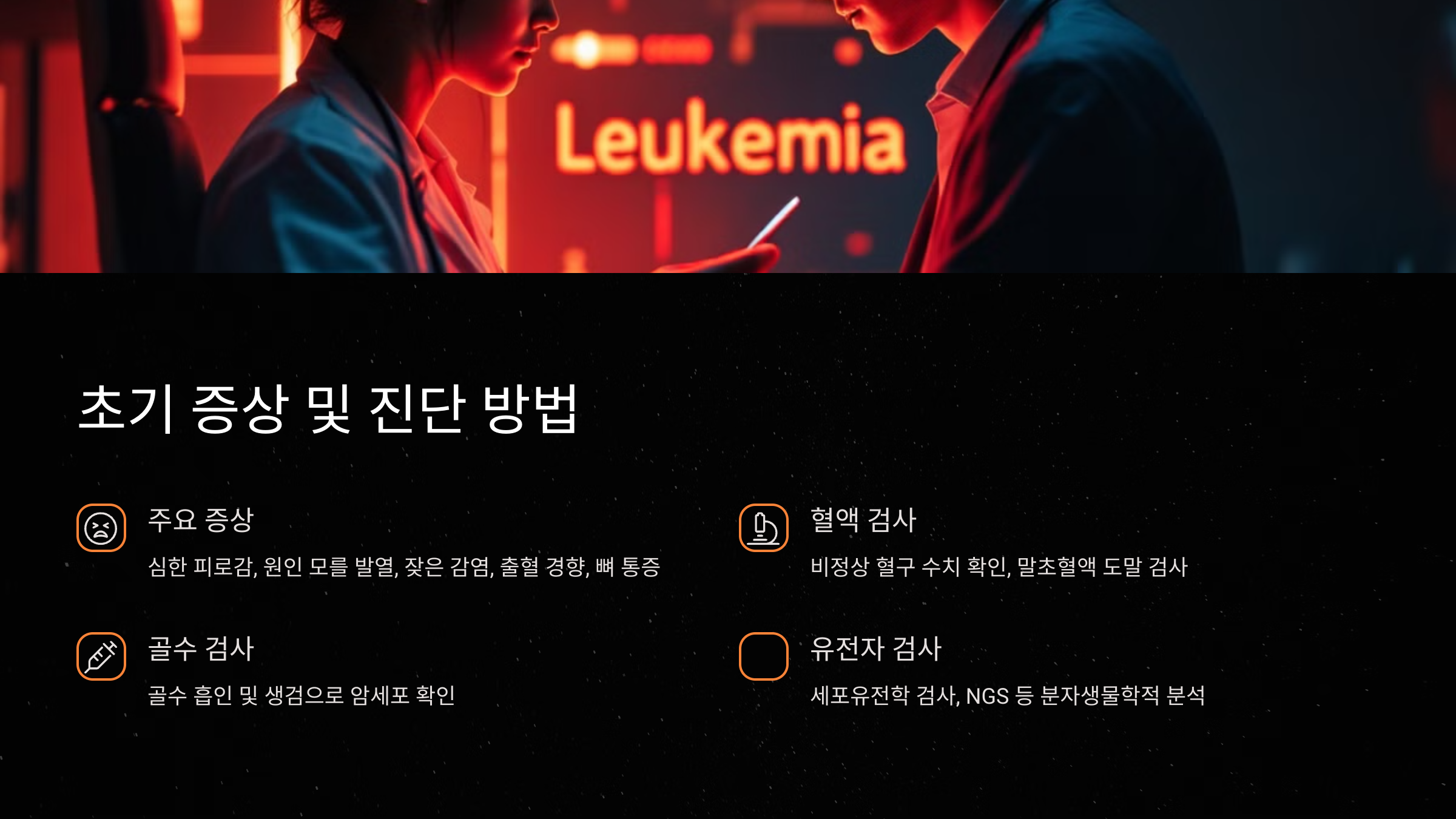 다음은 백혈병의 주요 초기 증상과 진단 방법에 대한 설명이에요. 만약 아래 증상 중 하나라도 지속된다면 반드시 병원을 방문해 정확한 검사를 받아야 해요. 🏥