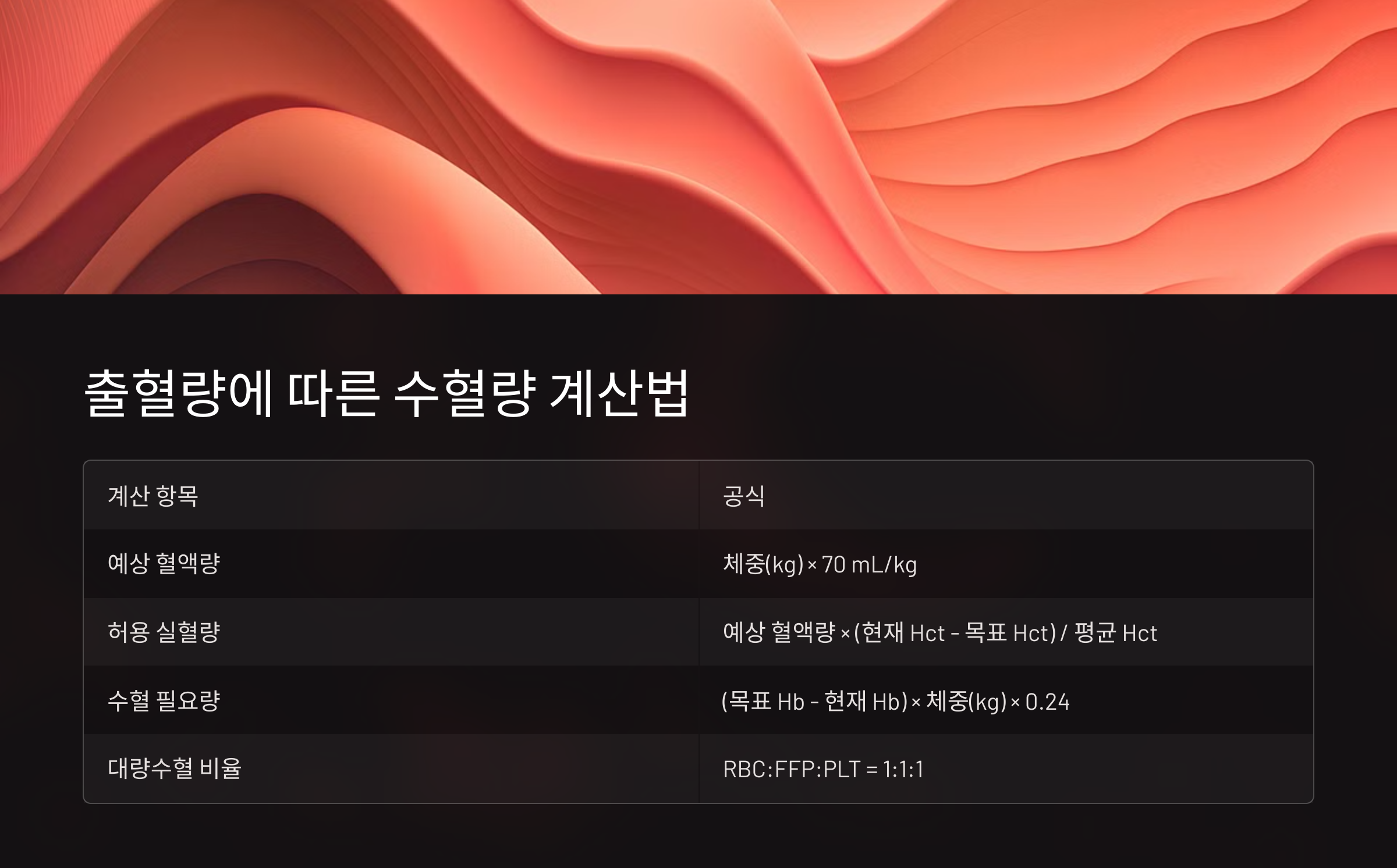 출혈량에 따른 수혈량 계산법