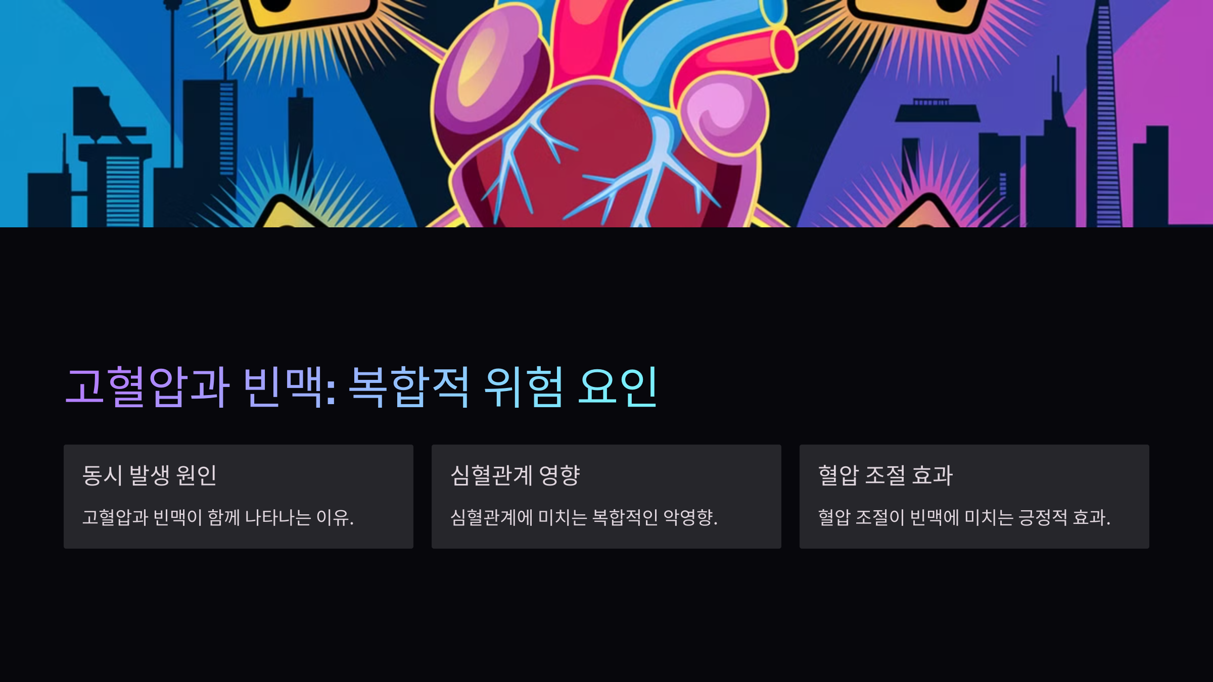 우리의 심장은 하루에도 수만 번 뛰면서 혈액을 온몸에 공급해요. 하지만 어떤 이유로 심장이 정상보다 빠르게 뛰는 빈맥(분당 100회 이상)이 발생하면 혈압과의 관계를 이해하는 것이 중요하죠.