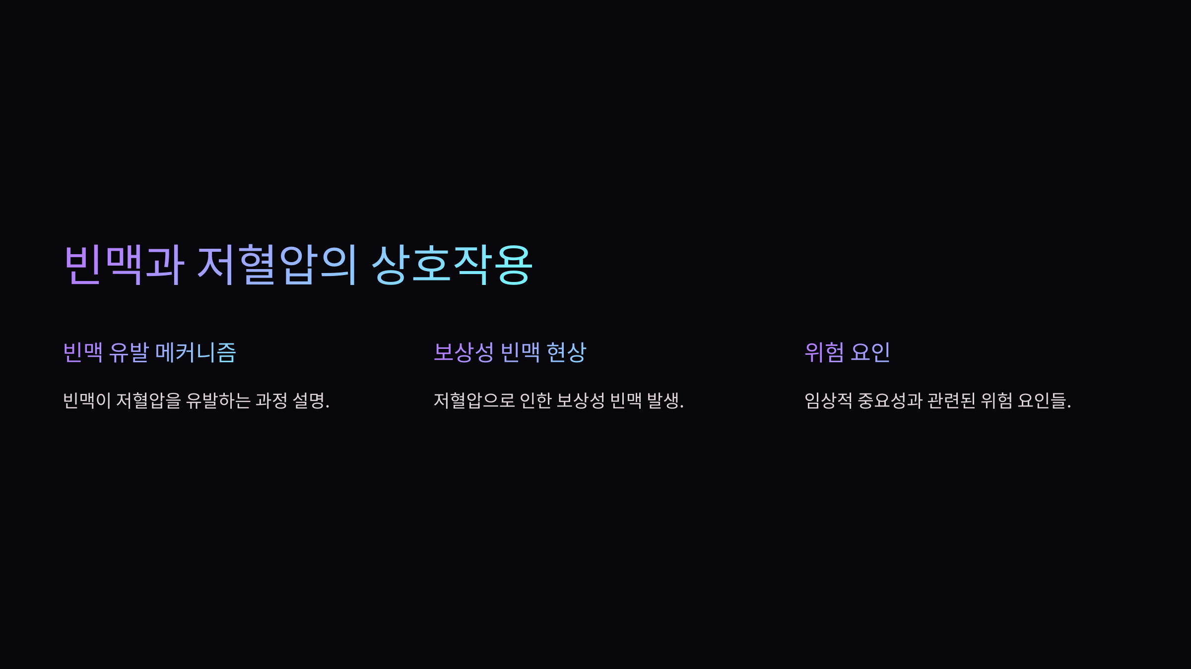 빈맥과 저혈압은 밀접한 관계가 있어요. 일반적으로 저혈압(수축기 혈압 90mmHg 이하)이 발생하면, 우리 몸은 혈류를 유지하기 위해 심장 박동을 빠르게 해요. 이 과정에서 빈맥이 나타날 수 있죠.