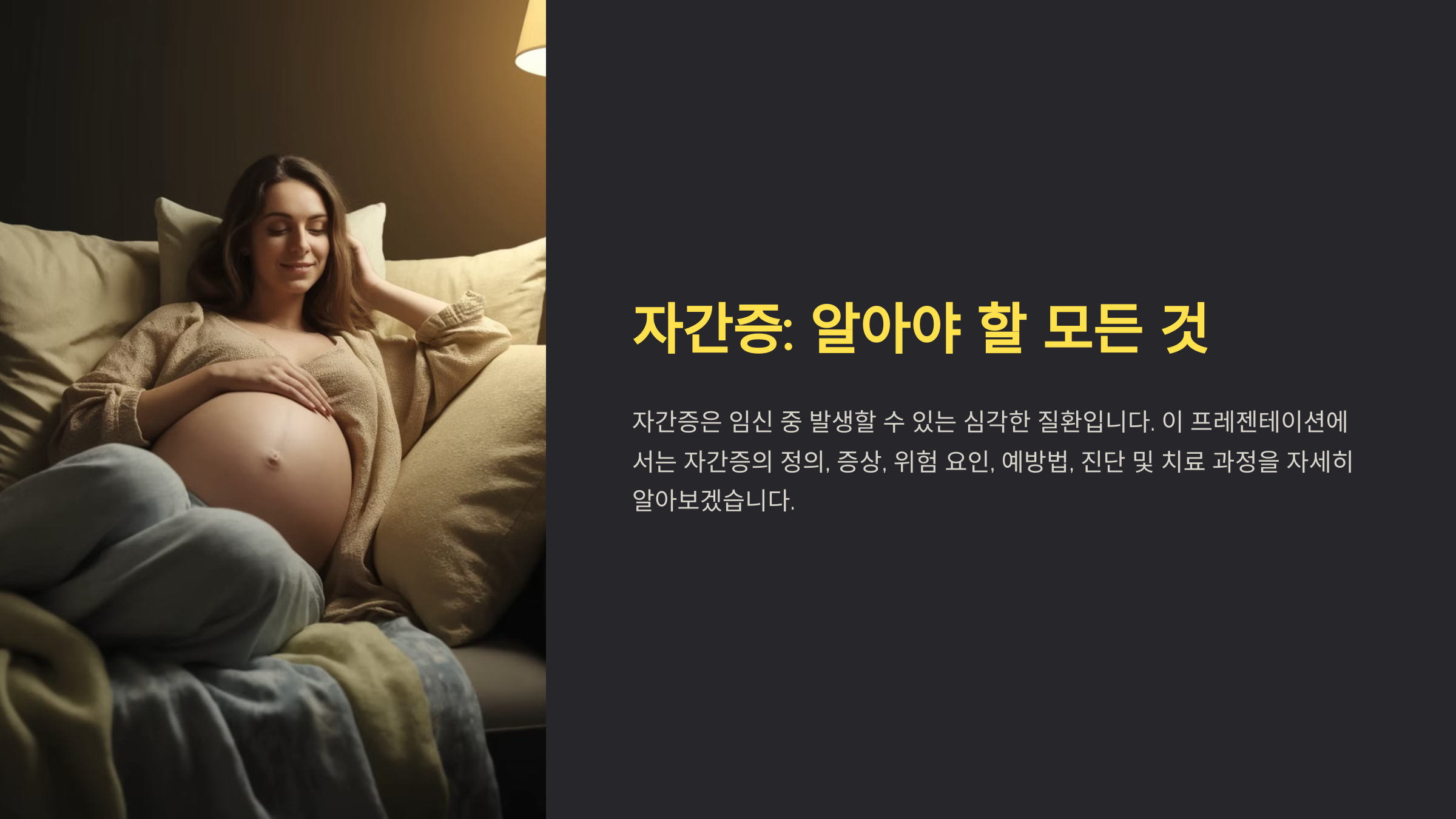 자간증은 임신 중 혈압이 심하게 상승하면서 발작, 경련, 의식 소실 등의 신경학적 증상을 동반하는 질환이에요. 보통 임신중독증(전자간증)이 악화되면서 발생하는데, 산모와 태아의 생명을 위협할 수 있어요.