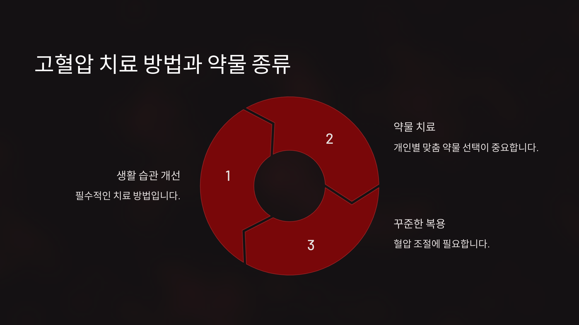 고혈압 치료의 첫 번째 단계는 생활 습관을 바꾸는 것이에요. 저염식, 규칙적인 운동, 금연, 절주, 스트레스 관리 등을 통해 혈압을 조절할 수 있어요. 경증 고혈압이라면 약을 먹지 않고도 혈압을 낮출 수 있답니다.