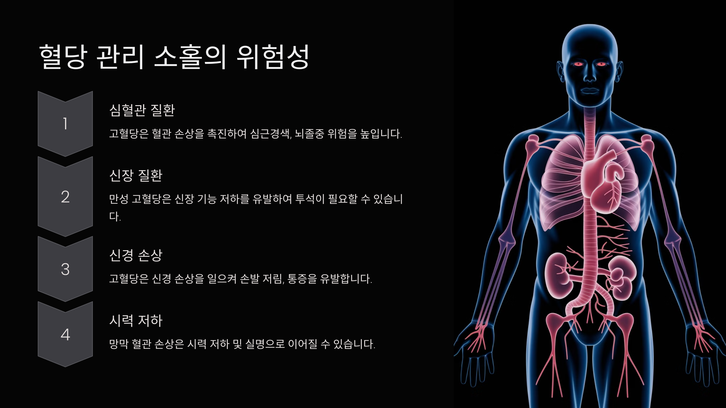 💡 **고혈당과 저혈당 모두 방치하면 심각한 건강 문제를 일으킬 수 있어요.** 특히 **고혈당**은 당뇨병으로 이어질 가능성이 높고, **저혈당**은 심한 경우 혼수 상태까지 초래할 수 있답니다. 그래서 혈당을 꾸준히 체크하는 것이 정말 중요해요! 📈
