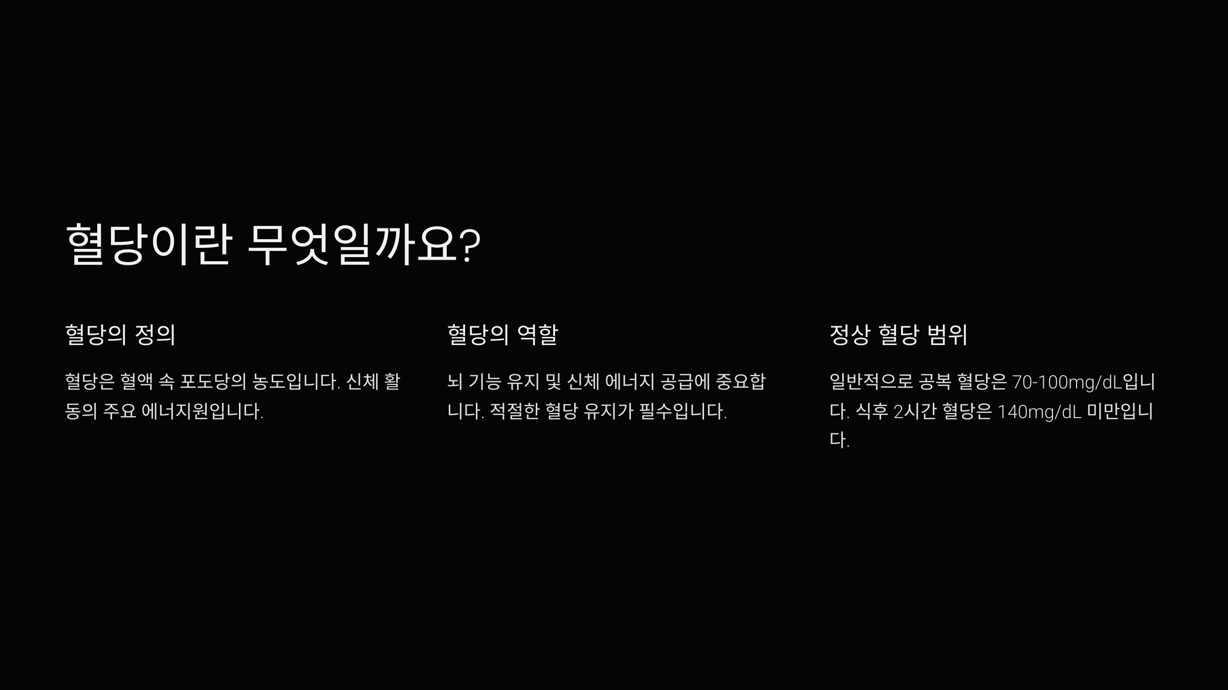 지금부터 혈당 관리의 핵심을 하나씩 알아볼까요? 🧐