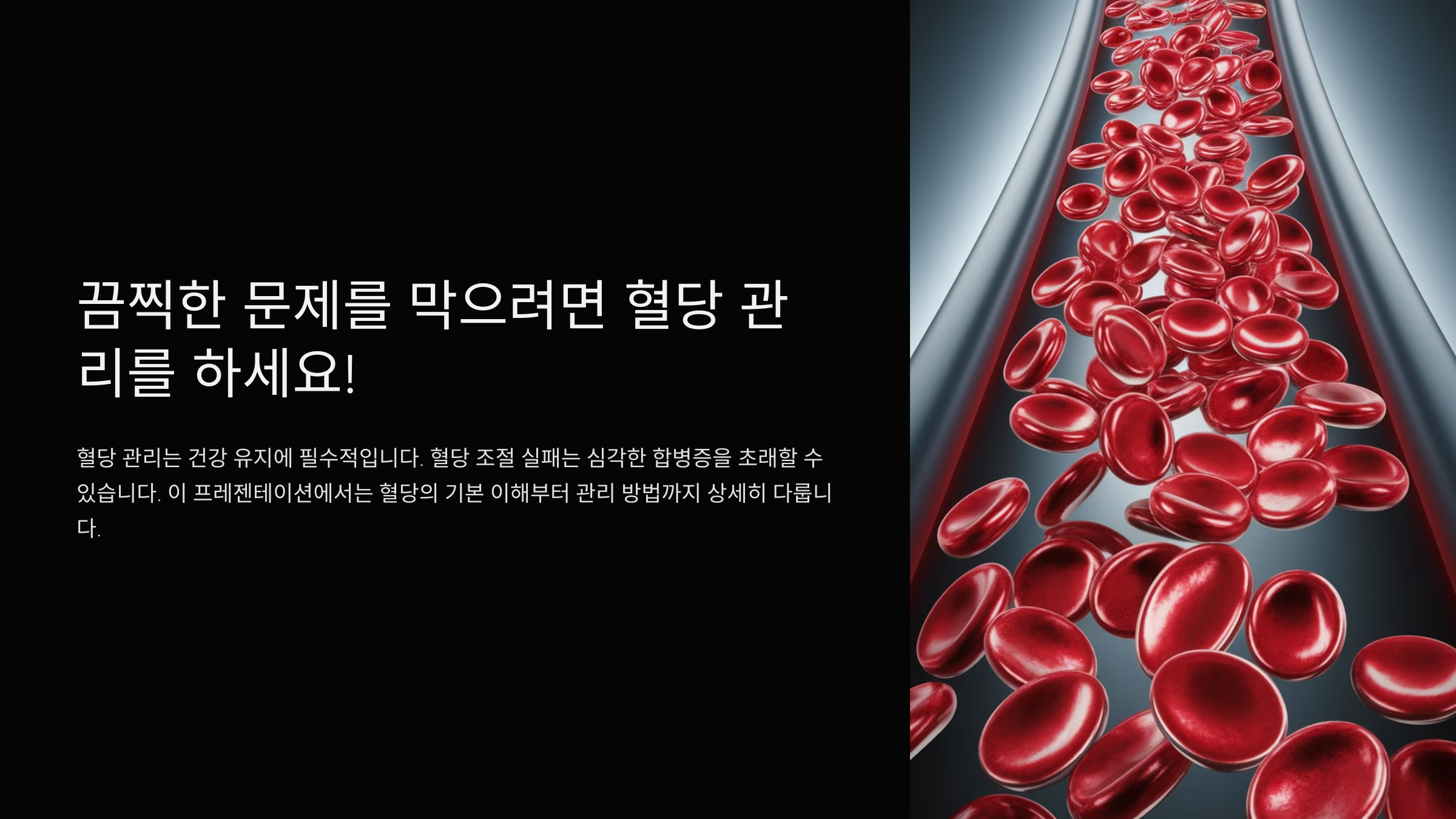 🩸 **혈당(Glucose)**은 우리 몸이 에너지를 얻는 필수적인 요소예요. 음식에서 섭취한 탄수화물이 소화되면서 **포도당으로 분해**되고, 이것이 혈액 속에 녹아있는 상태를 **혈당**이라고 해요. 혈당 수치는 췌장에서 분비하는 **인슐린**이라는 호르몬에 의해 조절되죠.