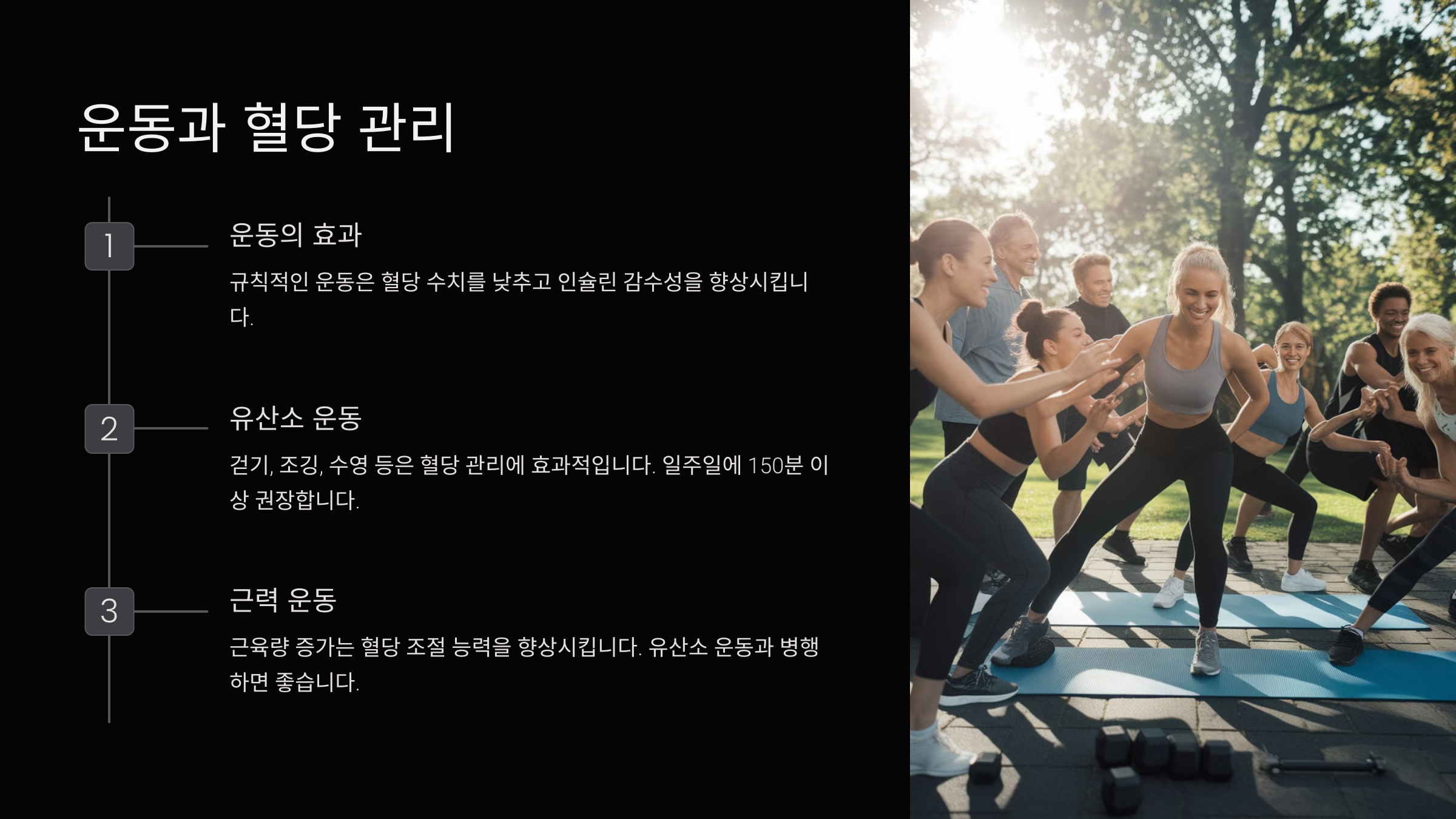 ✅ **운동을 꾸준히 하면 인슐린 감수성이 개선되어 혈당 조절이 훨씬 쉬워져요!** 운동과 함께 **혈당 관리의 핵심**인 당뇨병 예방과 관리 방법도 살펴볼까요? 👀