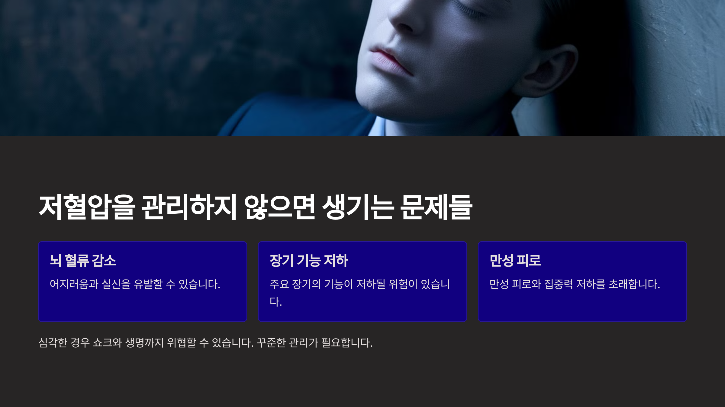 그럼 저혈압을 방치하면 어떤 문제들이 생길까요? 다음으로 알아볼게요! 🚨