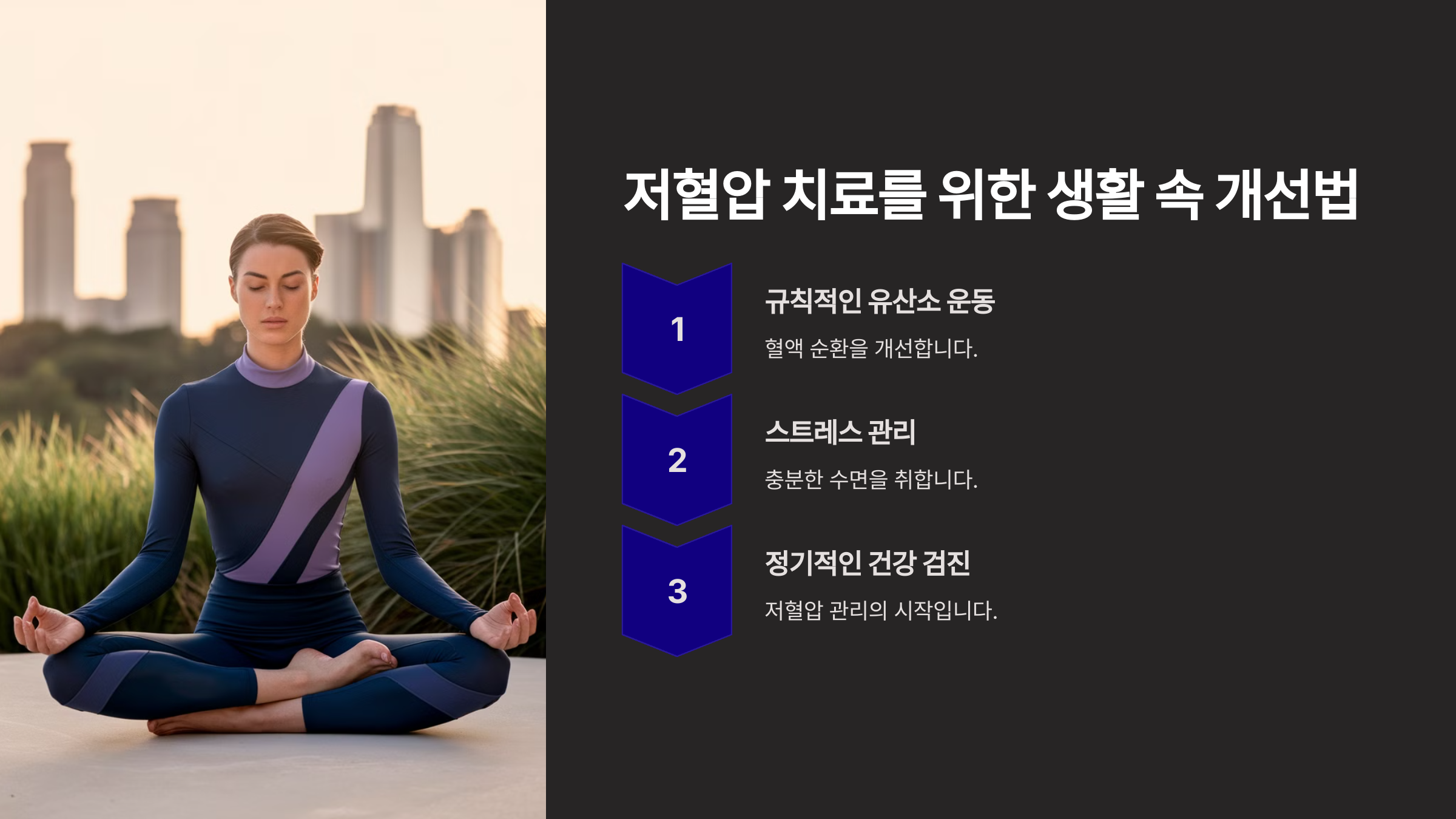 저혈압은 약물 치료보다 생활 습관 개선이 중요한 경우가 많아요. 평소 작은 습관을 바꾸는 것만으로도 혈압을 안정적으로 유지할 수 있답니다. 😊