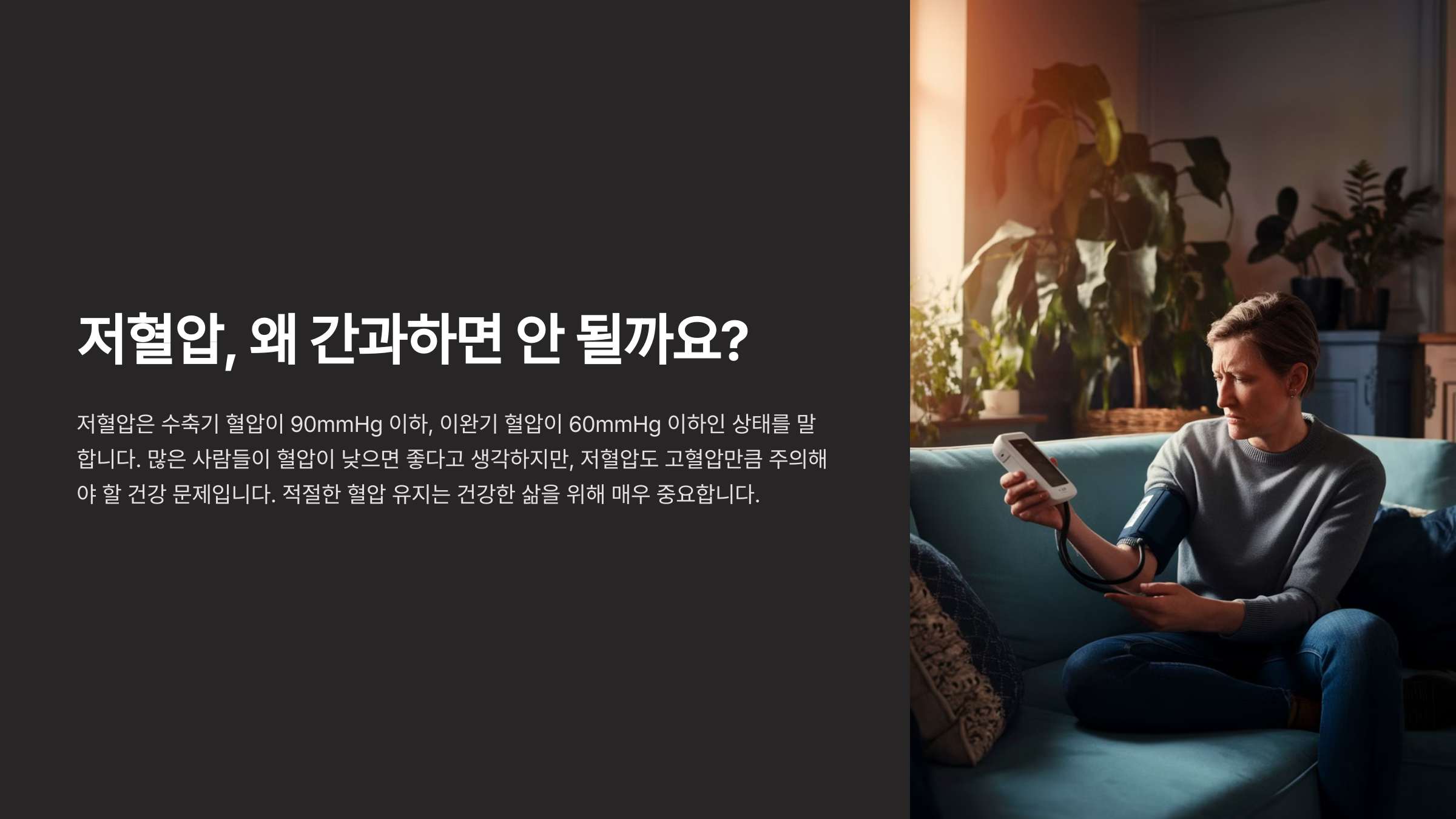 내가 생각했을 때 저혈압은 무조건 건강하다고 착각하기 쉬운 질병 중 하나예요. 하지만 혈액순환이 원활하지 않으면 뇌, 심장, 신장 같은 주요 장기에 산소 공급이 부족해질 수 있어요. 결국 만성적인 피로, 집중력 저하, 심한 경우 실신으로 이어질 수도 있죠.