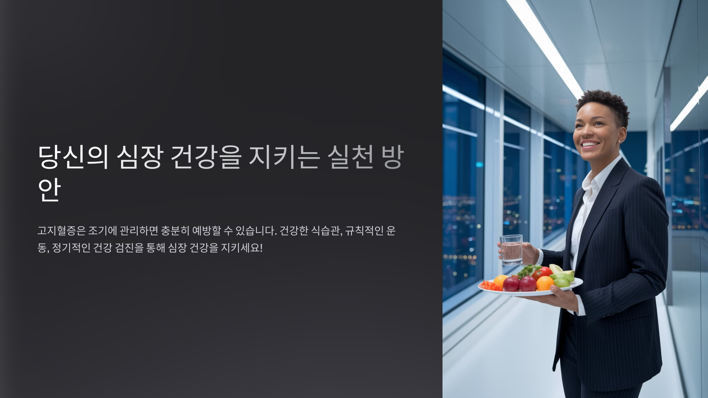 - 포화지방 줄이기 – 버터, 육류 지방, 패스트푸드는 피하세요.